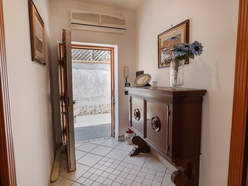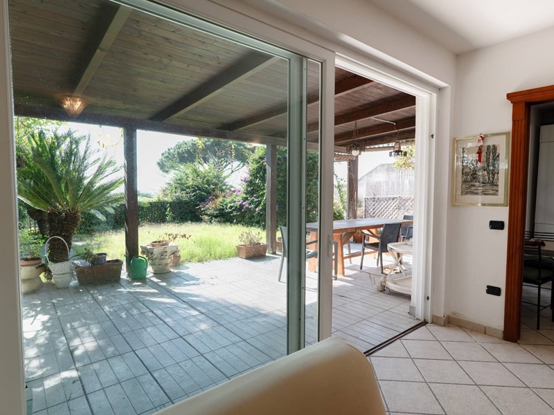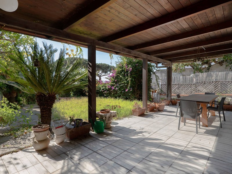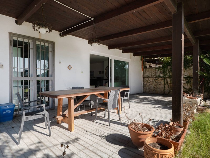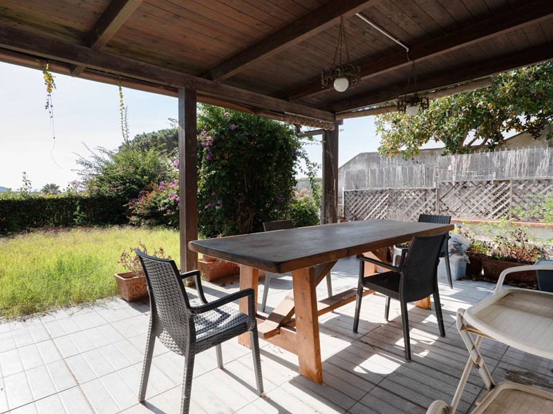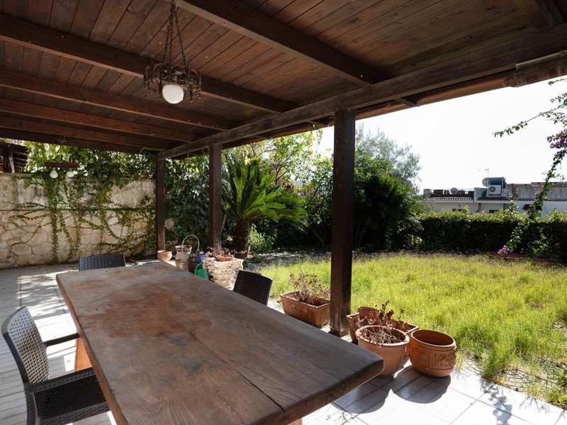 Allesterno, un ampio terrazzo dingresso rappresenta il cuore della casa: uno spazio ideale per cene allaperto, feste tra amici o semplicemente per rilassarsi nelle serate estive, godendo della tranquillità del contesto.