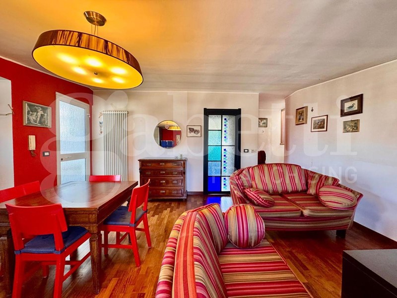 Al piano mansardato, con ingresso sia interno che dall'esterno, troviamo un vano open space attualmente adibito a soggiorno con angolo cottura, camera con cabina armadi, servizio, balcone e terrazzo panoramico.
