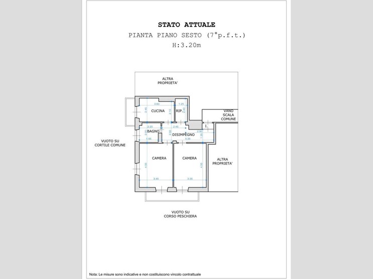 L'immobile è composto da: ingresso, cucina abitabile, due camere da letto, bagno, ripostiglio e due balconi. Completano la proprietà una cantina di pertinenza