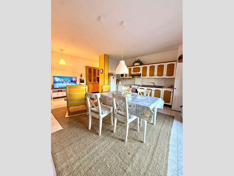 L'immobile al suo interno è composto da: un soggiorno con angolo cottura con annessa corte esterna in parte pavimentata e in parte giardinata, ingresso, due camere da letto e doppi servizi.