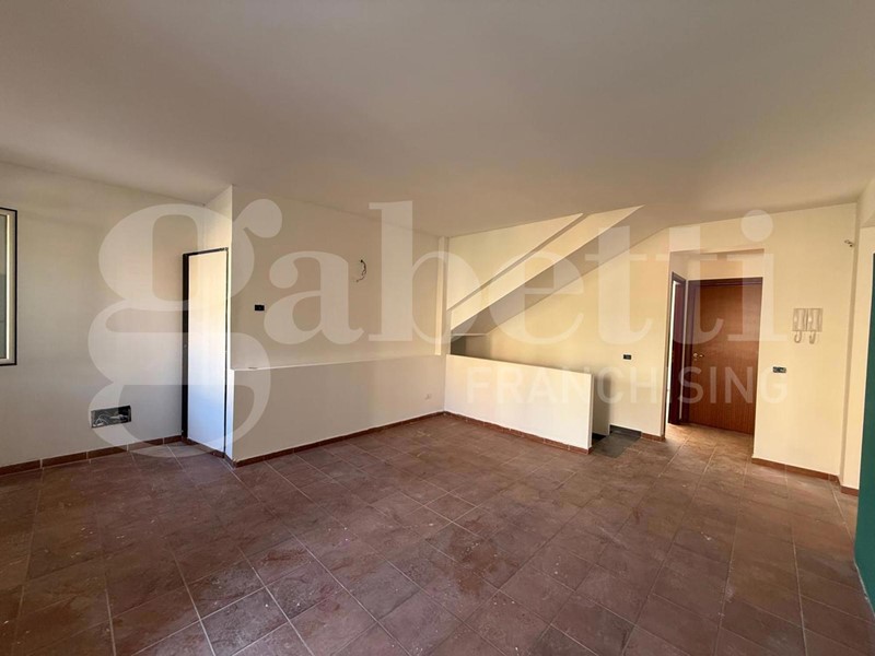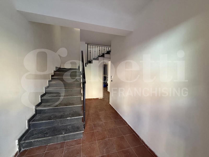 Al piano terra abbiamo la presenza di un ingresso carrabile di circa 25 mq caratterizzato da un portico. Al primo piano abbiamo la zona giorno, composta da: salone doppio, cucina grande, e un bagno, e al secondo piano abbiamo un disimpegno che fa da preludio alla zona notte composta da: due camere da letto panoramiche e un bagno.