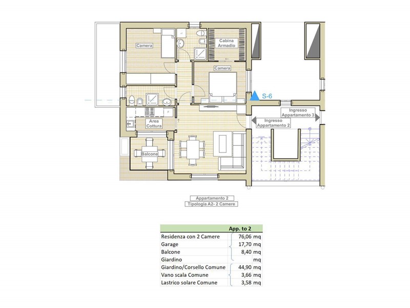L'appartamento si distingue per i suoi spazi ben definiti: una generosa zona giorno con cucina separata garantisce massima praticità e comfort, arricchita da un balcone che regala una piacevole vista sul verde circostante. La zona notte comprende due camere da letto, una delle quali dotata di una comoda cabina armadio, e due bagni, offrendo soluzioni abitative perfette per la vita di ogni giorno.