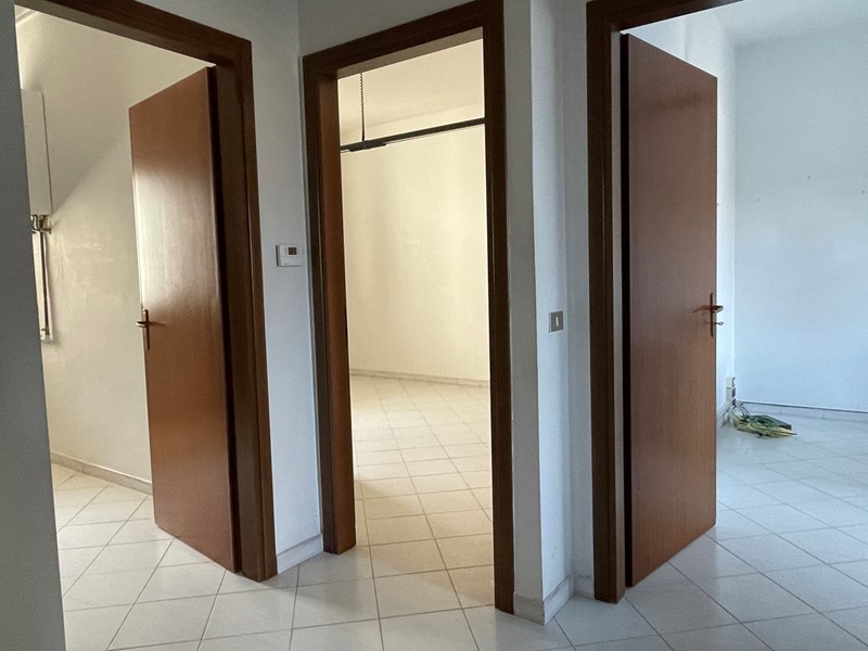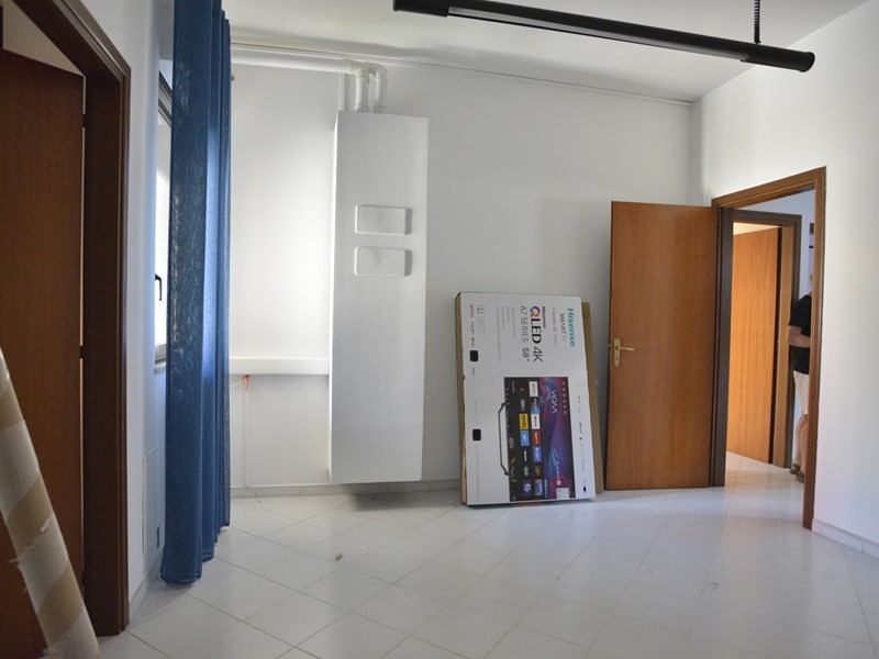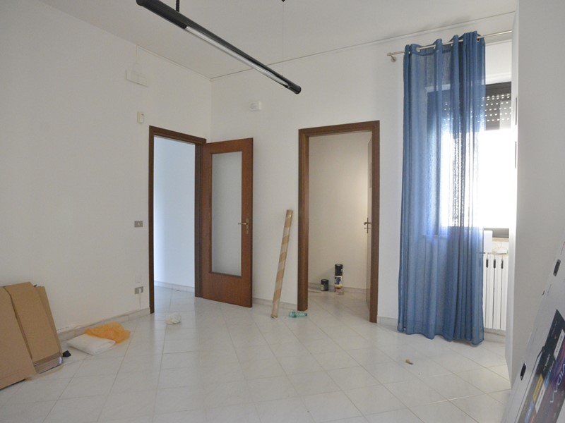 L'immobile, attualmente in categoria catastale A/10, è comodo, di mq. 90 ca., ed è posto a piano intermedio. Entrando l'ingresso disimpegna l'immobile. Gli ambienti sono tre, di cui uno particolarmente grande, oltre un'altra camera, divisa da un tramezzo da un piccolo vano dove sono presenti gli attacchi idrici; il bagno è comodo ed ha finestra. Gli spazi sono ben distribuiti. La porta è blindata; gli infissi sono in alluminio con doppio vetro; il riscaldamento è autonomo e gli ambienti sono climatizzati. Nella zona condominiale adibita a parcheggio, un posto auto a piano terra, con ampia possibilità di manovra.