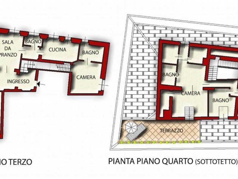 -ulteriori DUE AMPIE CAMERE mansardate, CIASCUNA CON proprio SERVIZIO RISERVATO e VARI RIPOSTIGLI/CABINE ARMADI .