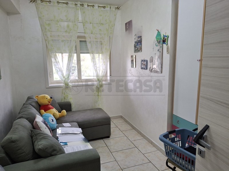 Il terrazzo, recentemente ripreso nel 2024, e le balconate con doppio affaccio – sia interno che esterno al condominio – rendono l’abitazione piacevole e ariosa. Gli ambienti interni sono ben distribuiti e comprendono un ingresso su soggiorno con angolo cottura, tre camere da letto, un bagno finestrato, lavanderia e ripostiglio.