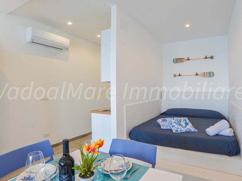 Il monolocale è stato appena ristrutturato, è spazioso, moderno e molto luminoso, con una splendida terrazza vista mare dove rilassarsi ammirando il panorama. L’open space è dotato di angolo cottura, zona pranzo, divano letto e letto matrimoniale.