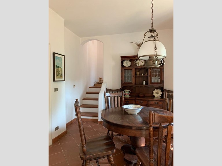 L’abitazione si sviluppa su due livelli: al piano terra troviamo una spaziosa zona giorno, una cucina abitabile e un comodo ripostiglio. Al piano superiore, accessibile tramite una scala in cotto, si trovano una camera matrimoniale, una camera con due letti singoli, una cameretta con un letto singolo e un bagno finestrato dotato di vasca.