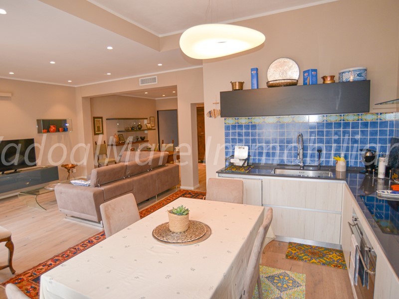 L'appartamento si compone di una ampia zona living con cucina a vista e balconata, il corridoio conduce alla zona notte composta da due camere da letto matrimoniali e da doppi servizi.
