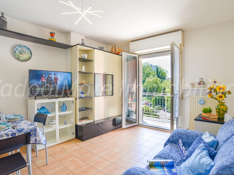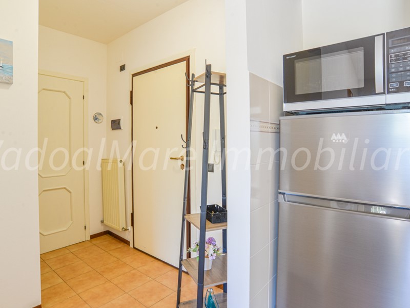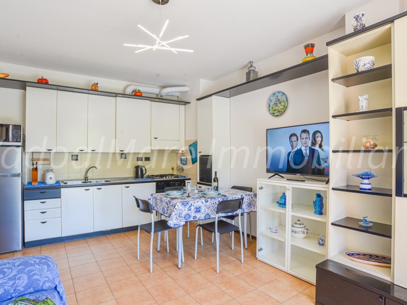 Questo immobile è situato al secondo piano di una palazzina dotata di ascensore. La zona giorno è accogliente e funzionale, con angolo cottura completamente attrezzato, tavolo da pranzo e divano. Da qui si accede a un ampio balcone con affaccio sul verde urbano, perfetto per gustare una colazione all’aperto o rilassarsi al rientro dal mare. Completano l’alloggio una confortevole camera da letto matrimoniale e un bagno finestrato, dotato di una ampia doccia.