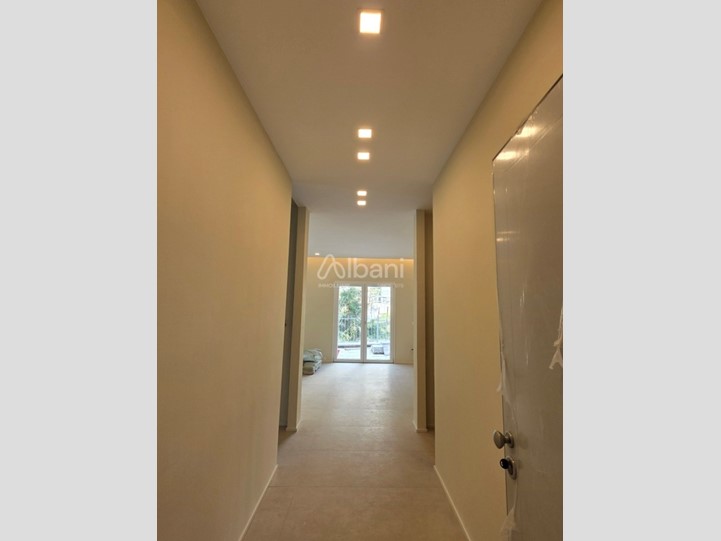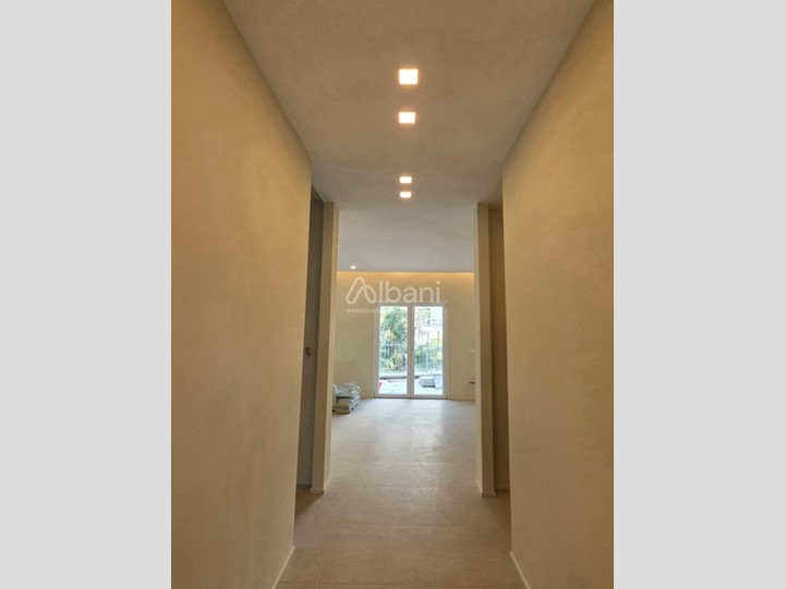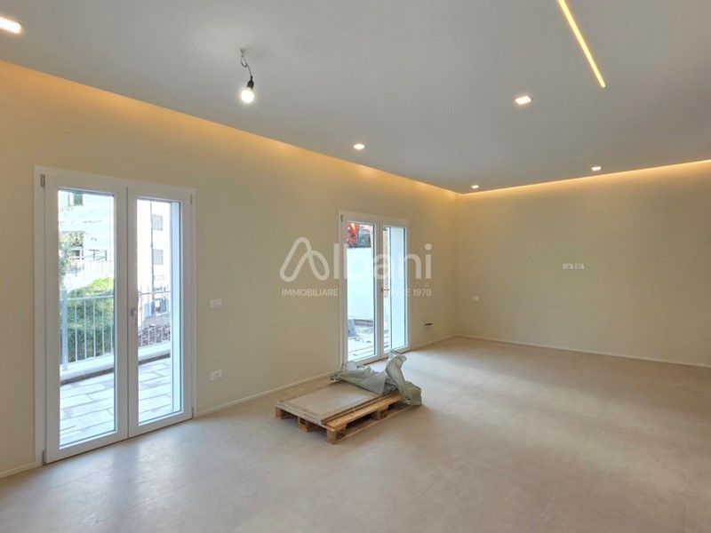 • Living in open space controsoffittato, predisposto per la cucina lineare a vista, la zona pranzo, l'area salotto/tv, triplo accesso alla terrazza abitabile che serve la zona giorno.
