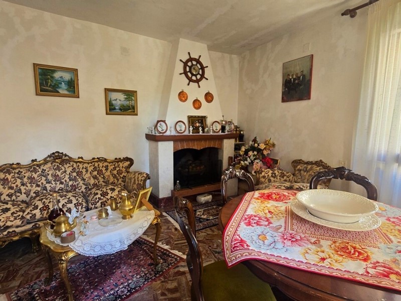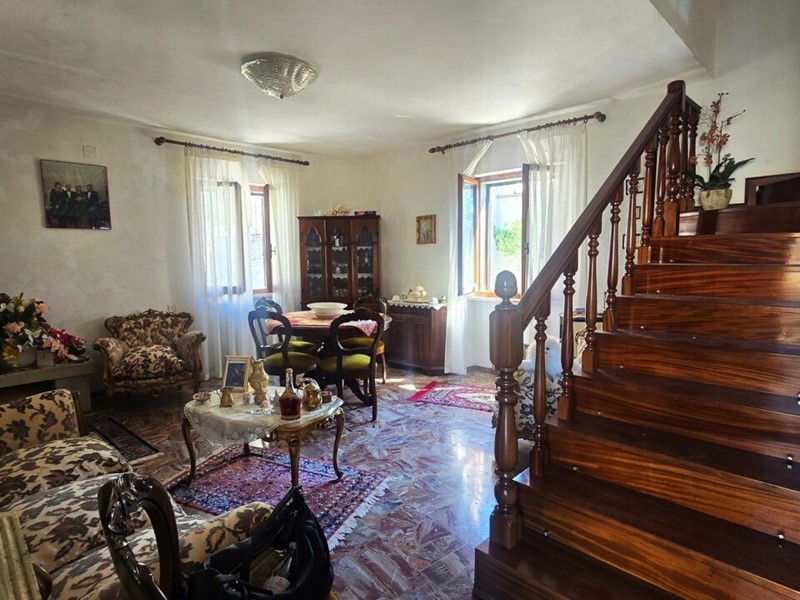 Di fronte all'ingresso troviamo una scala in legno che conduce al primo piano dove troviamo tre camere da letto ed un bagno con vasca. Abitabile, da migliorare. Le facciate sono in pietra, attualmente intonacate parzialmente.