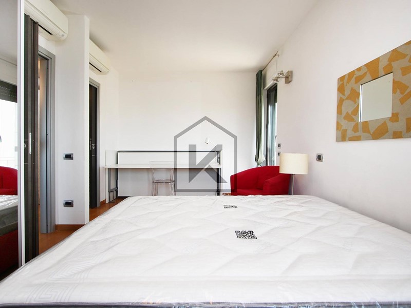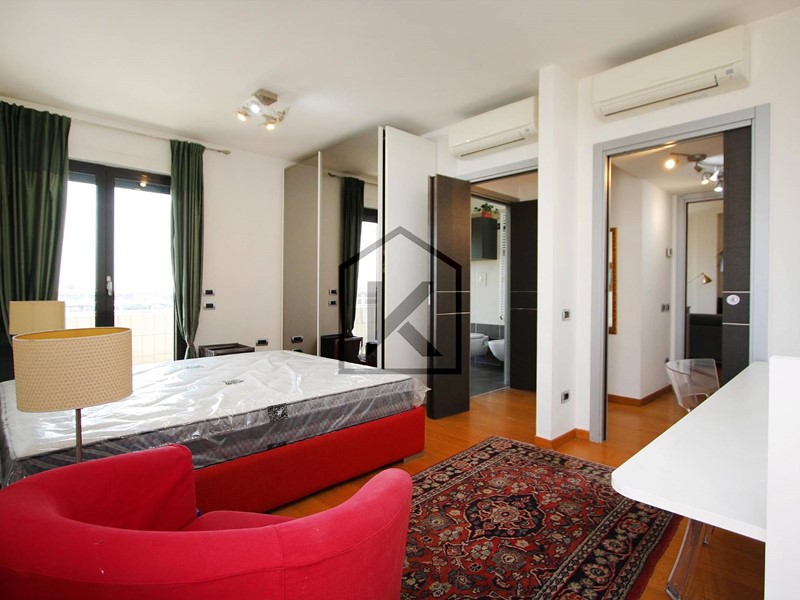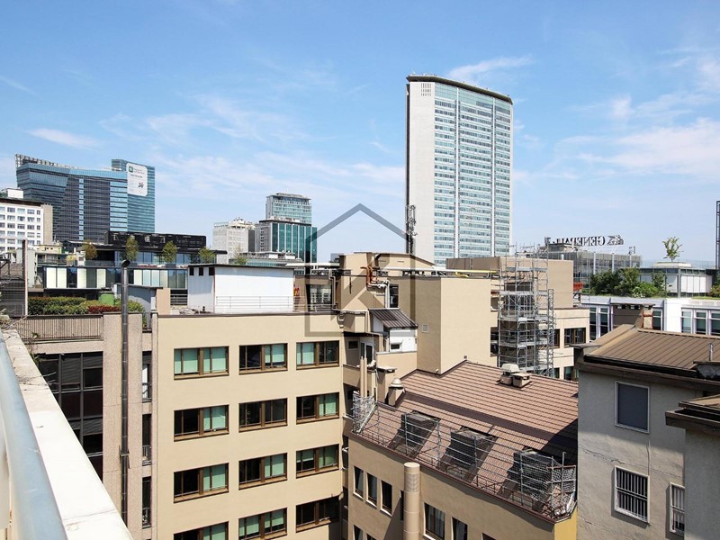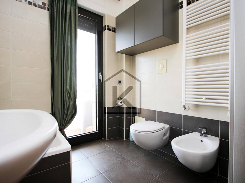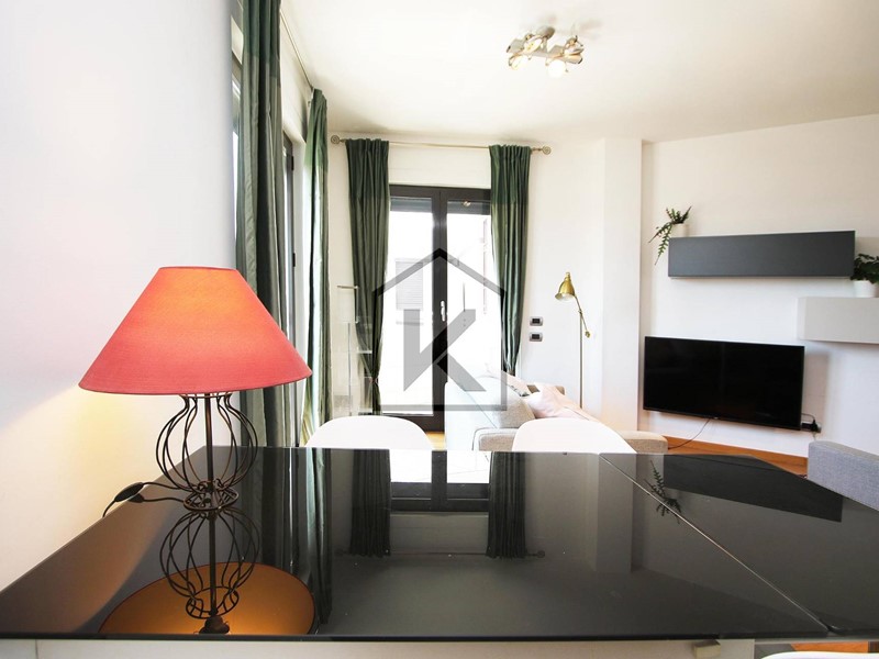 L'appartamento ha un layout moderno e ben organizzato che sfrutta al meglio la superficie disponibile. L'ingresso si apre su un gradevole soggiorno con cucina a vista e una bella luce data dall'esposizione angolare, vi sono due porte finestra, una di accesso ad un balconcino e l'altra ad un secondo balcone che si estende fino al terrazzo per una superficie esterna totale di quasi 40mq, ideale per godere appieno degli spazi esterni in ogni stagione. La zona notte comprende un disimpegno con comodo ripostiglio in cui è posizionata la lavatrice, bagno con vasca e doccia e una spaziosa camera matrimoniale nella quale si può ricavare un angolo studio separato, in questo caso sia la camera che l'eventuale studio avrebbero entrambi accesso al terrazzo. L'appartamento ha una tripla esposizione che garantisce luce naturale per tutta la giornata con affacci silenziosi e molto luminosi da dove si gode una visuale panoramica sulla città.