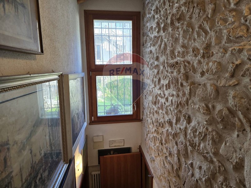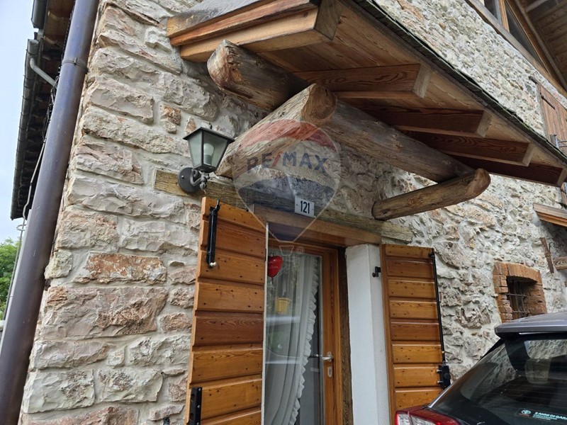 Allesterno completa la proprietà un posto auto scoperto. Le porte di accesso al fabbricato sono dotate di tettoie con copertura a "scandole", classico e ora raro metodo di isolamento dei tetti.