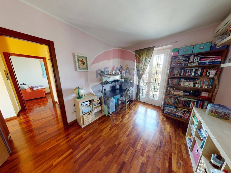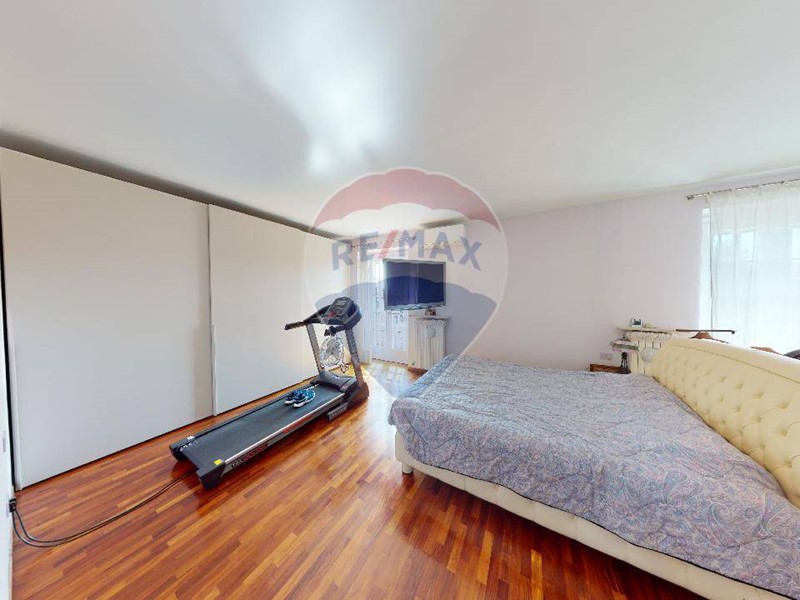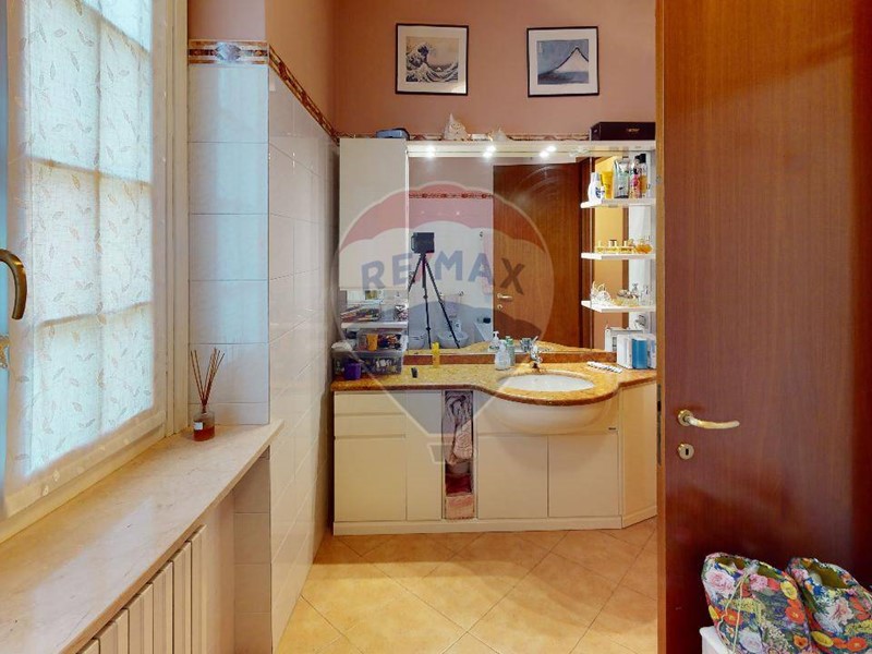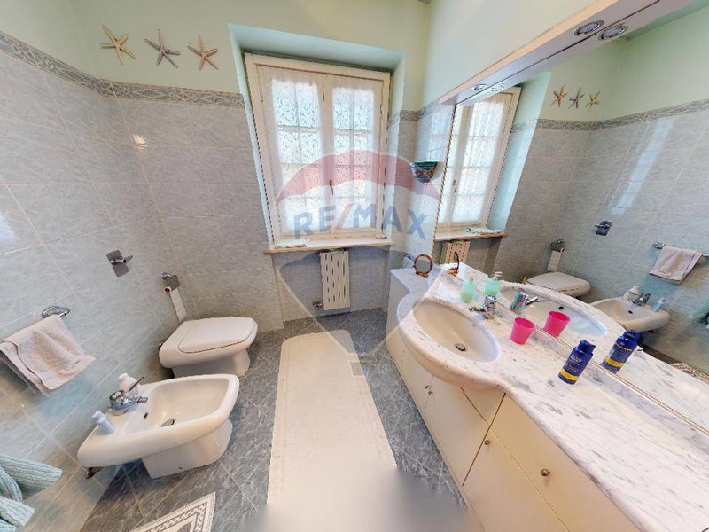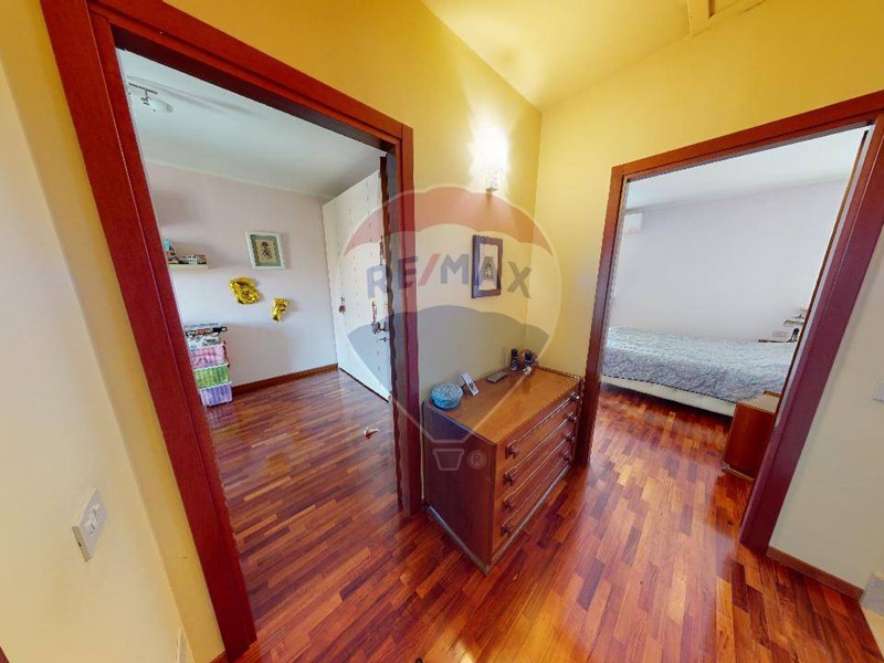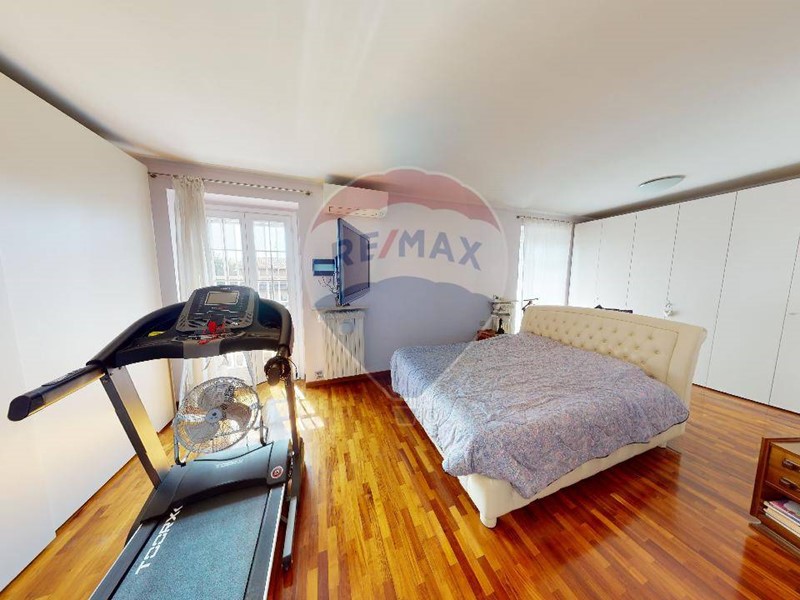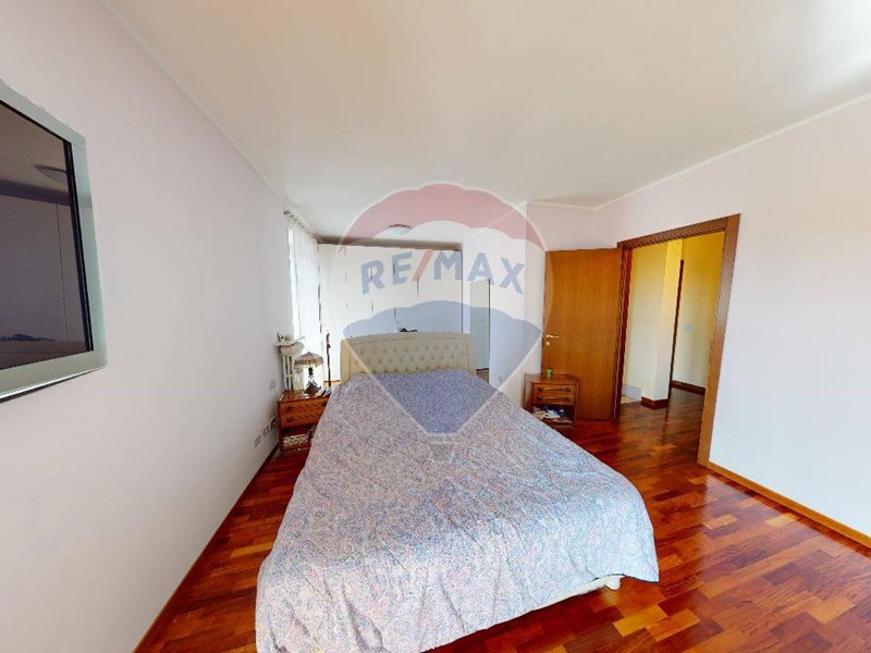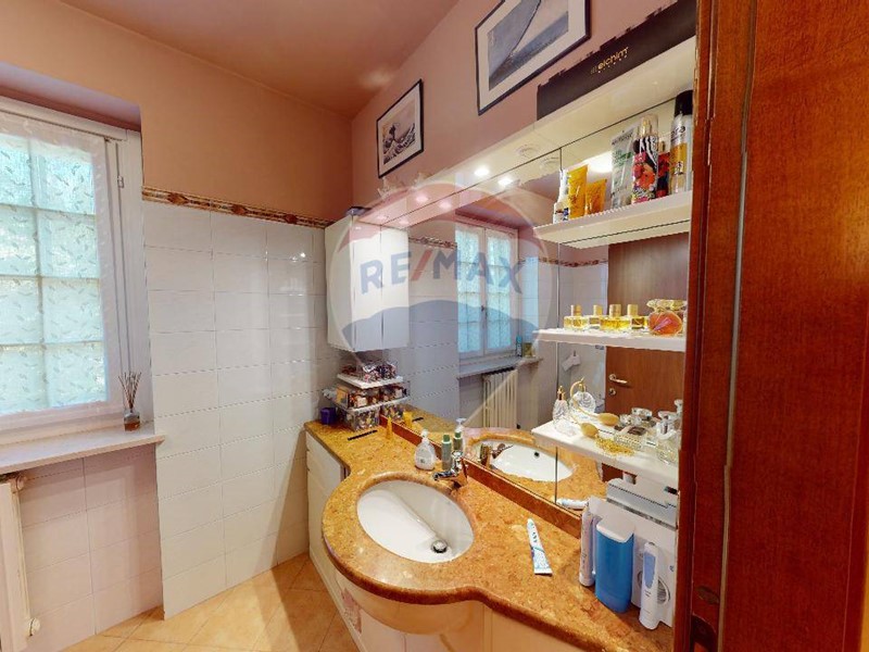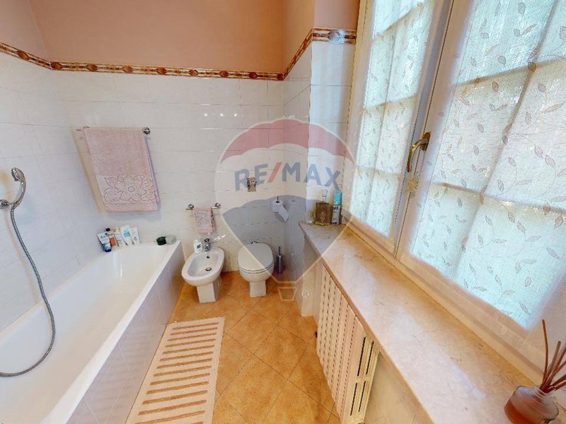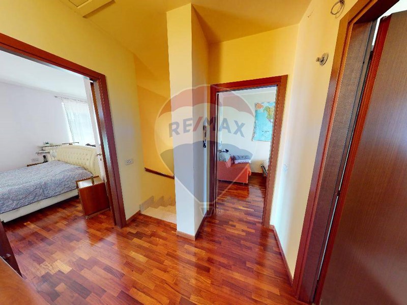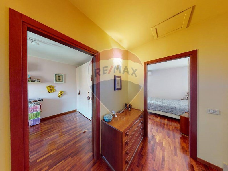 Al piano superiore una grande camera matrimoniale, con ampio balcone che affaccia sul giardino. disimpegno che porta al bagno padronale, e due camere da letto servite da balconi. La zona notte è interamente pavimentato con parquet. Da tenere presente che nel prezzo sono compresi gli arredi dei due bagni e diversi accessori d'arredo di ottima finitura. Il grande giardino è organizzato dall'irrigazione automatica, molto apprezzabile l'orientamento in quanto accarezzata dal sole del pomeriggio, viceversa per la parte della cucina dove il terrazzino prende sole il mattino.