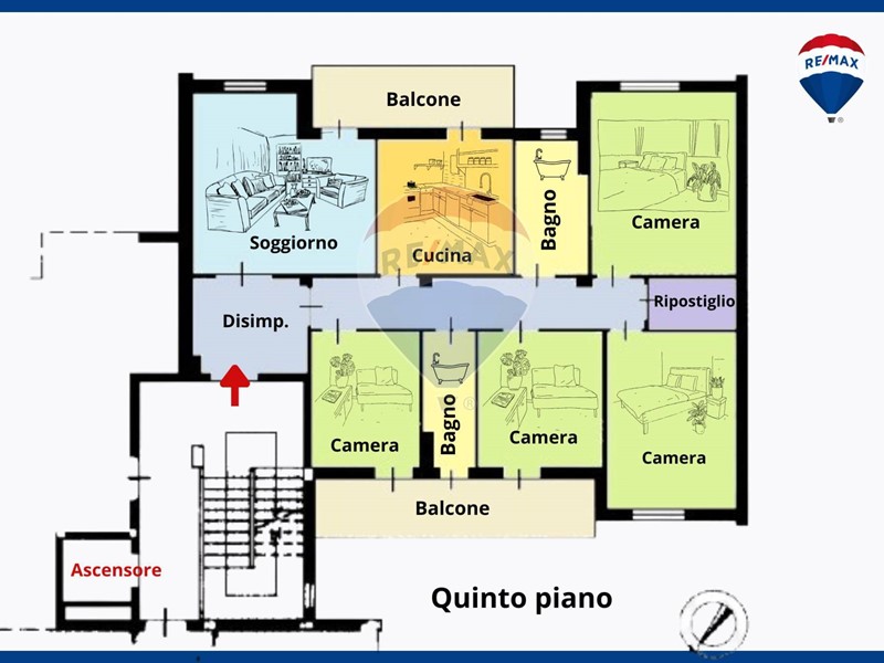 In zona semicentrale, proponiamo in vendita un appartamento dalle generose metrature, tipologia esavano, situato al quinto piano e servito dallascensore.