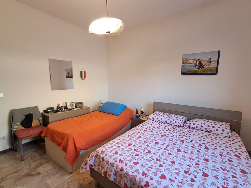 ingresso, sala con balcone, cucina abitabile con balcone, 3 camere letto (1 matrimoniale, 1 doppia con balcone e 1 singola), 2 bagni finestrati con vasca e doccia, garage e piccolo scoperto privato.