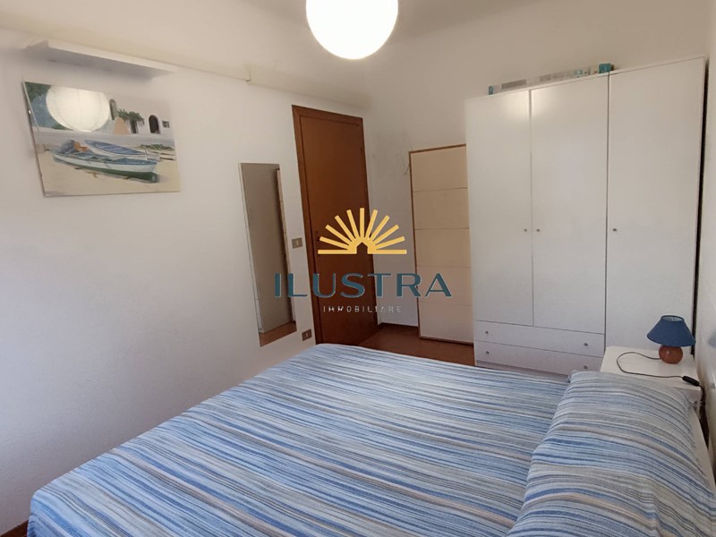 L'unità immobiliare di circa mq 60 presenta ingresso su soggiorno con cucina a vista, due camere, una matrimoniale e una doppia, bagno finestrato con doccia e due terrazzini abitabili con splendida vista mare.