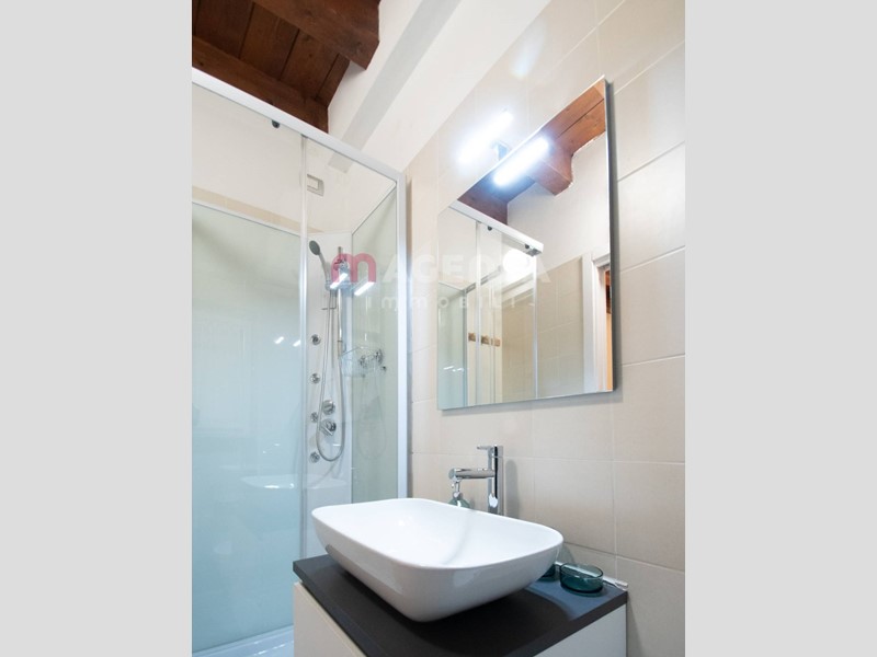 Le travi a vista in ogni ambiente regalano una sensazione di calore e accoglienza, mentre la classe energetica A3 garantisce comfort e risparmio.