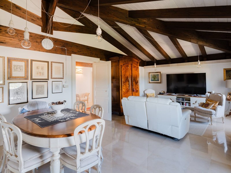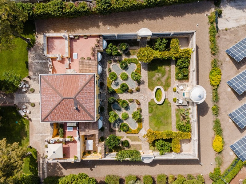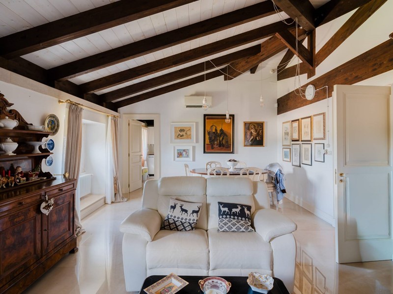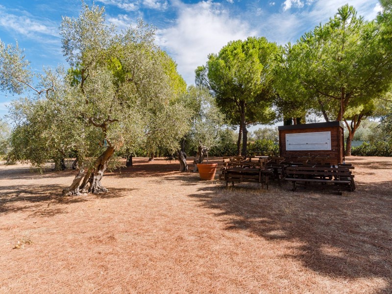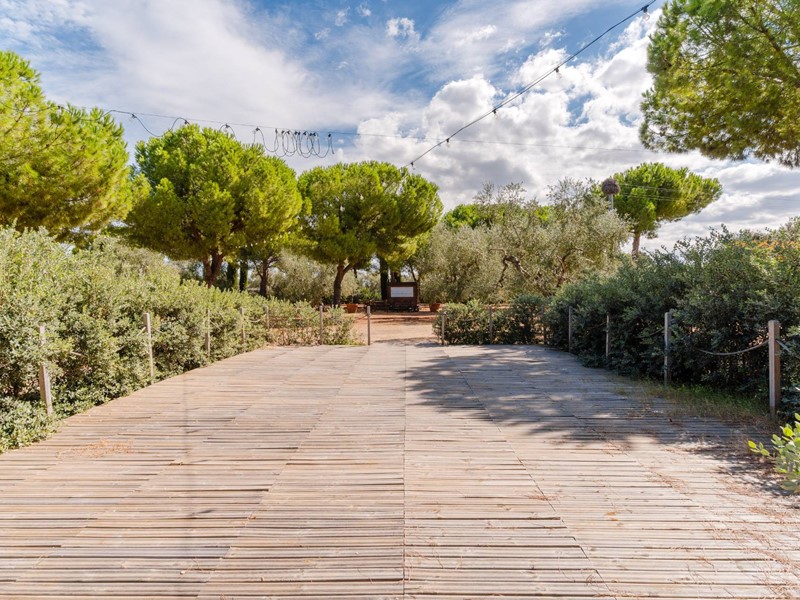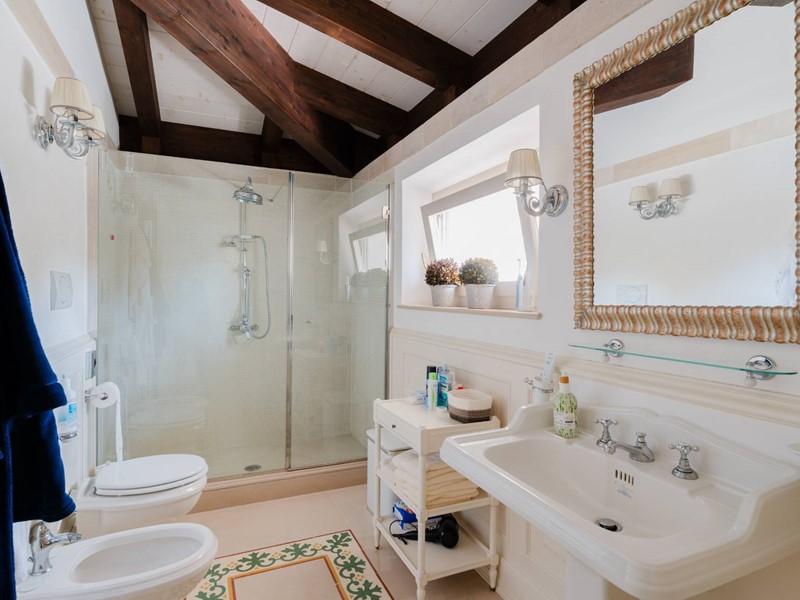 A dare un tono di esclusività e calore agli ambienti, un soffitto mansardato con travi in legno a vista oltre all'affaccio sui terrazzi ed alla meravigliosa vista sul parco circostante. Il parco appunto, ne parliamo in ultimo ma per questo non meno importante, semplicemente perchè una volta varcato il cancello ci si ritrova immediatamente trasportati indietro nel tempo. Un viale alberato, un giardino dall'impronta mediterranea, gli ulivi secolari, una piccola chiesetta consacrata, un coffee house, una fontana, i pini, la cornice di un grande parco.