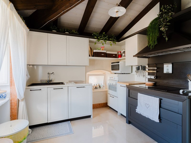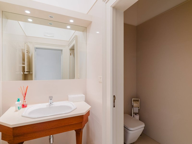 Al primo piano, appartamento completamente indipendente composto da un singolare grande ingresso che ci introduce alle due camere matrimoniali con bagno en suite dalle dimensioni particolarmente generose. Un salone open-space ed una bella cucina completano la soluzione.
