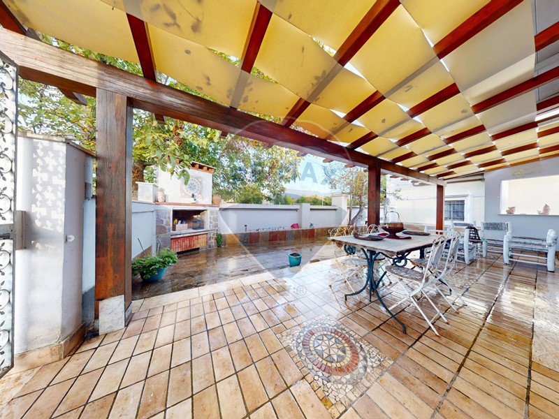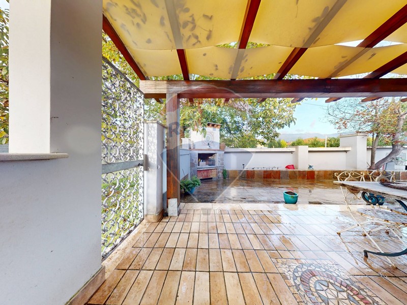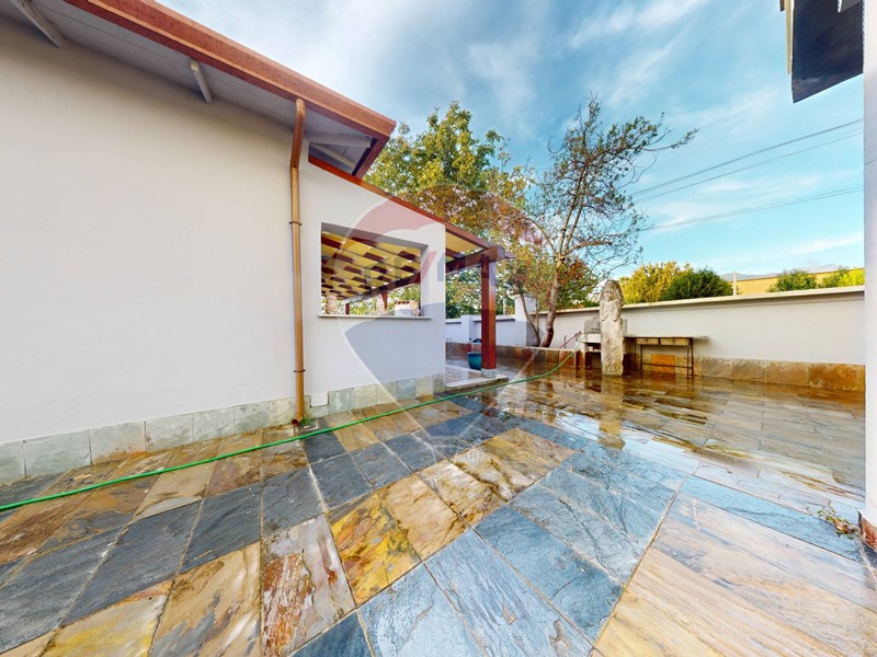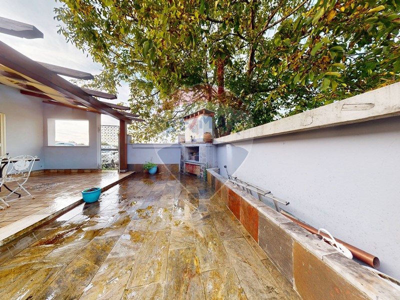 Il giardino piastrellato di 150mq offre uno spazio ideale per trascorrere piacevoli momenti di relax e divertimento in famiglia o con gli amici.