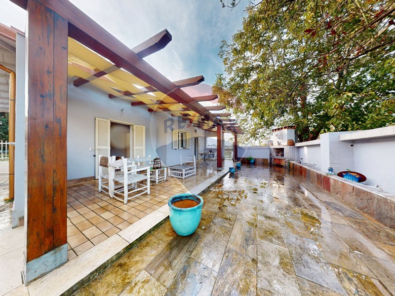 All'ingresso, un ampio portico di quasi 40mq accoglie gli ospiti e permette di godere del clima mite della zona anche all'aperto.