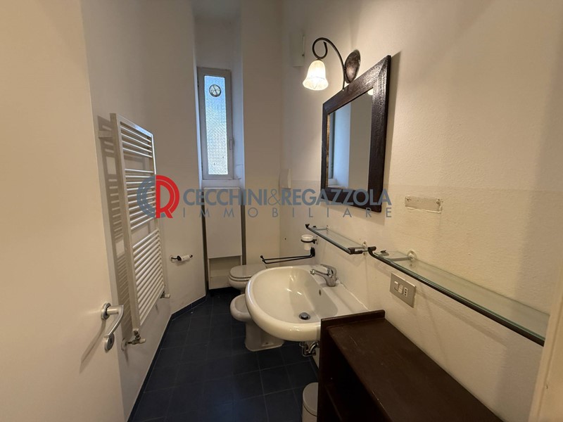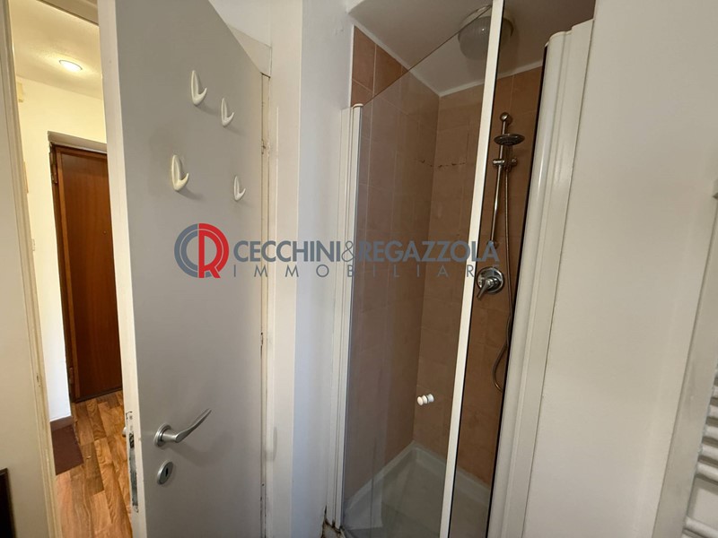 Il bagno, finestrato, è dotato di doccia e rifinito in modo semplice e funzionale.