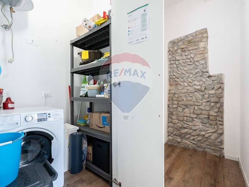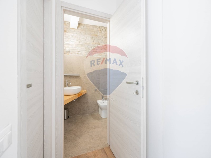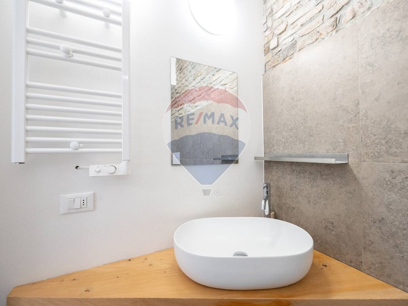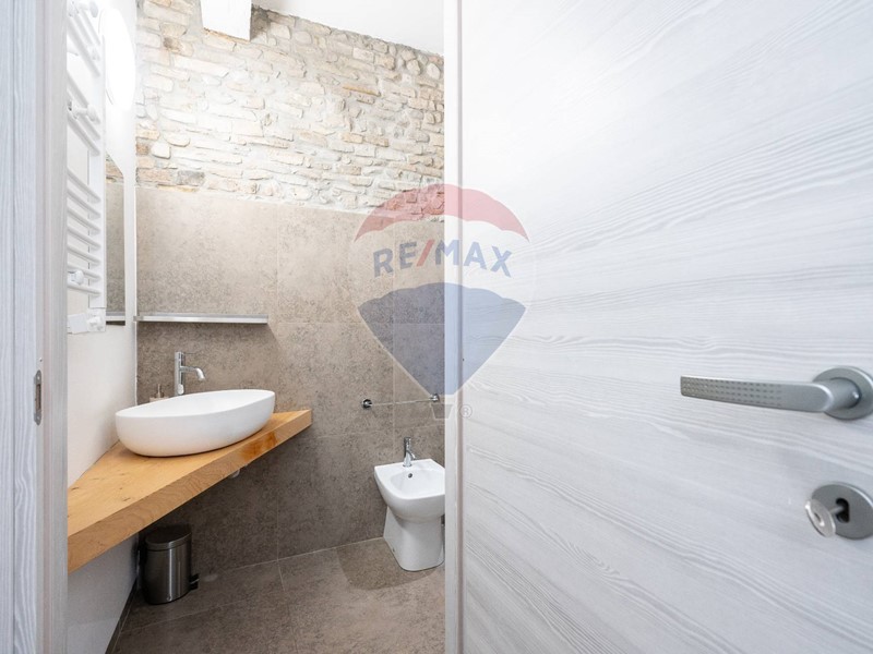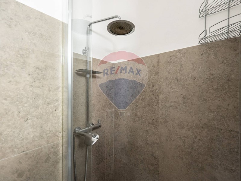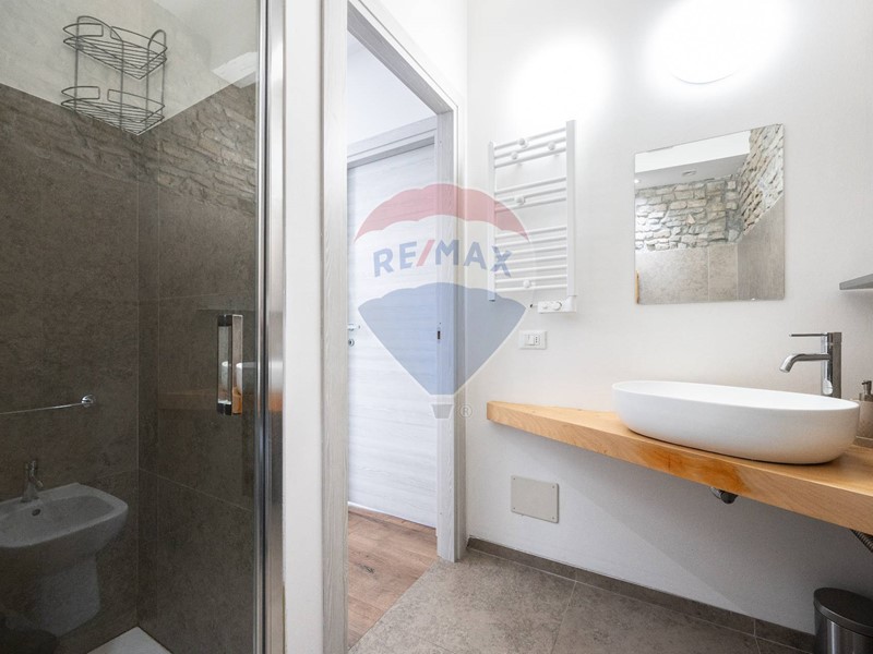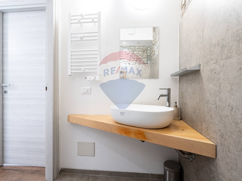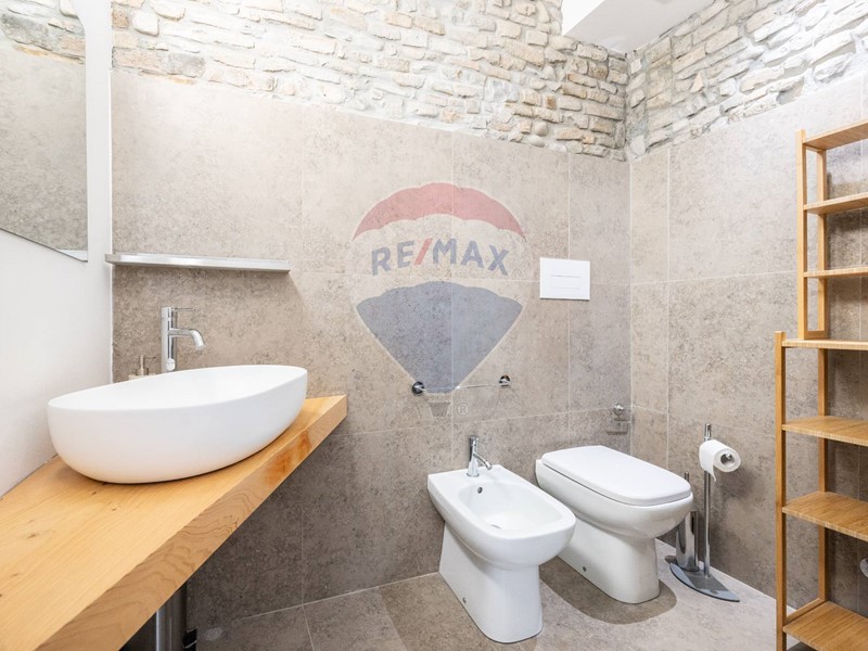 Non puoi non apprezzare l'ampio bagno, modernamente progettato con sanitari e doccia di design, dove l'estetica raffinata si unisce alla funzionalità: le pareti interne in sasso raccontano la storia di un luogo che ha saputo evolversi senza dimenticare le sue origini.