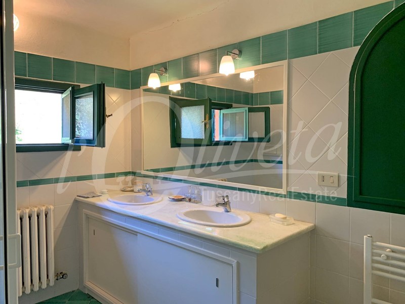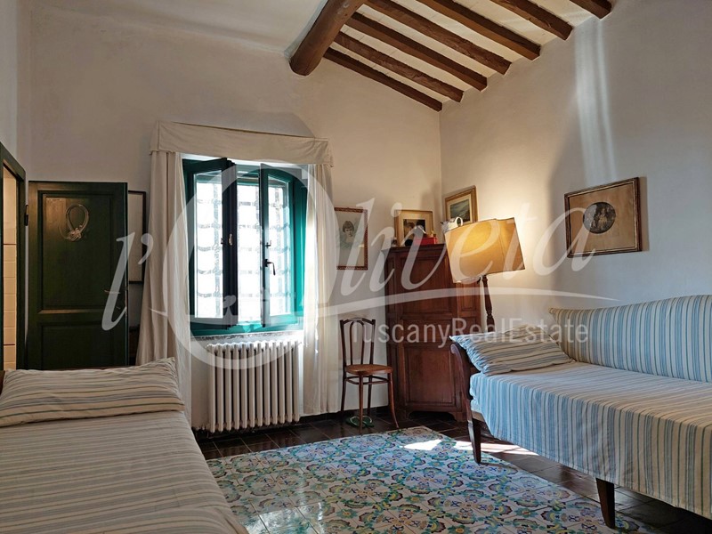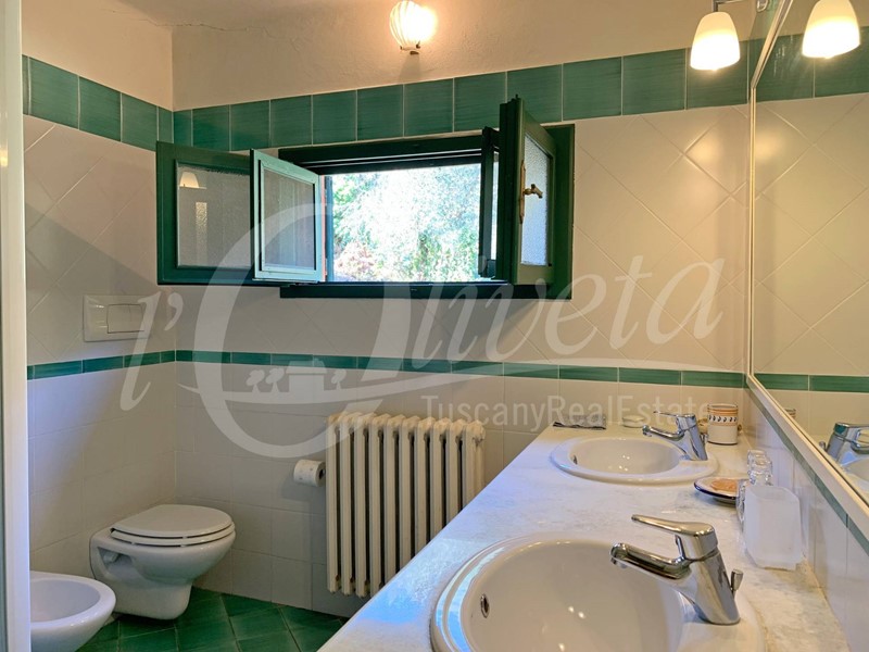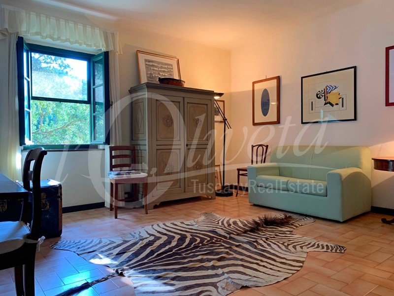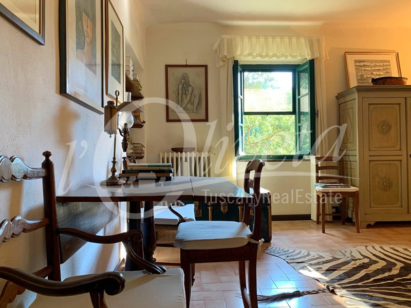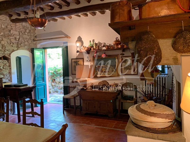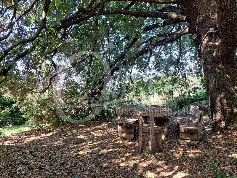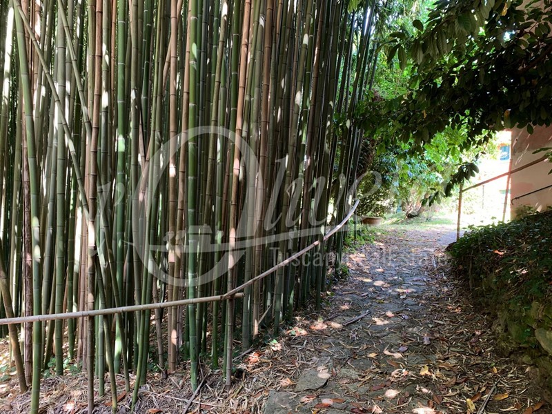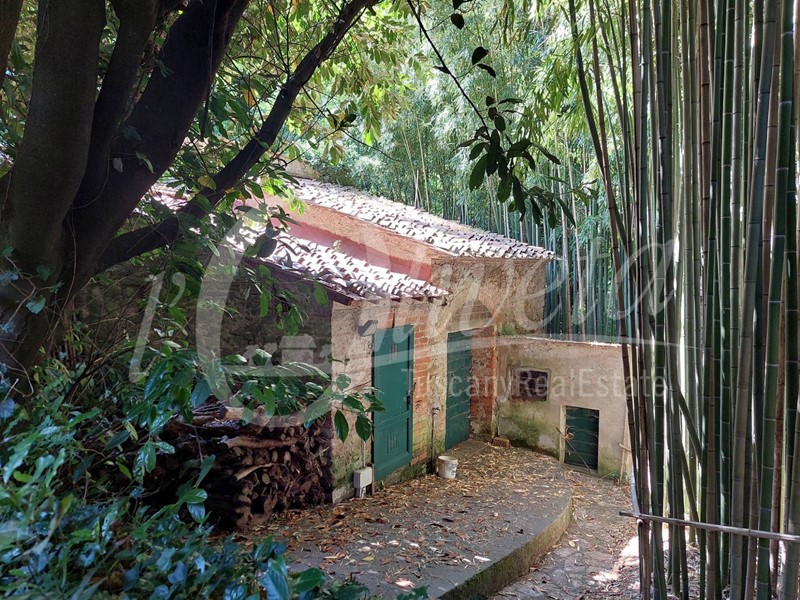 Rif. A0339 - La proprietà in vendita si trova in contesto collinare, a metà strada tra Lucca e Pisa, in posizione riservata e tranquilla, inserita allinterno del terreno di proprietà e celata allo sguardo dalla magia di una foresta di bambù che cresce lungo il torrente e delimita a sud la proprietà.