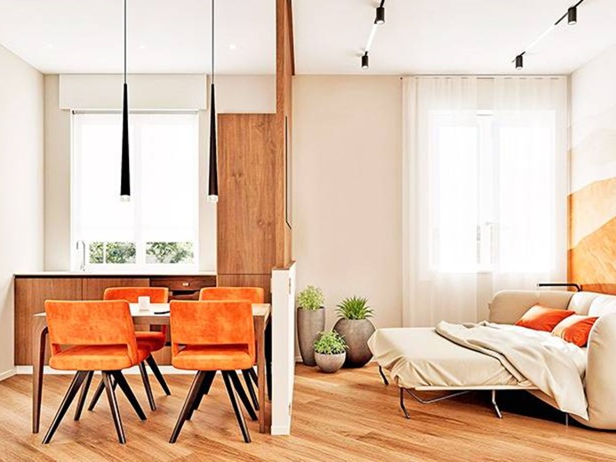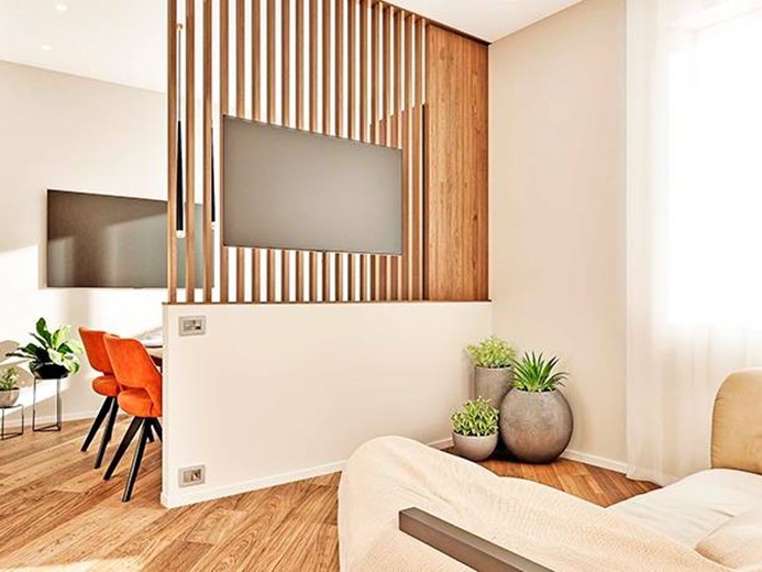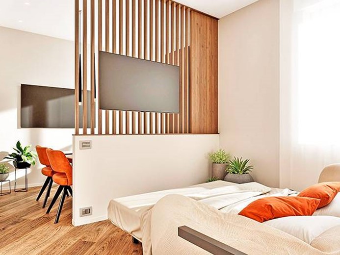 Internamente l'appartamento sarà composto da ampio ingresso, zona cucina semi separata e finestrata, zona soggiorno/letto, bagno, disimpegno con cabina armadio.