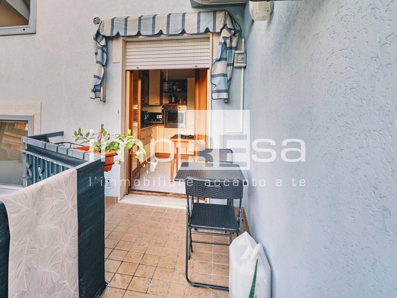 Ingresso su zona giorno, soggiorno spazioso cucina separata abitabile e un'unico terrazzo che collega il salotto alla cucina con la possibilità di mettere un piccolo tavolo per mangiare fuori. Sempre nella zona giorno c'è un ripostiglio zona lavatrice.
