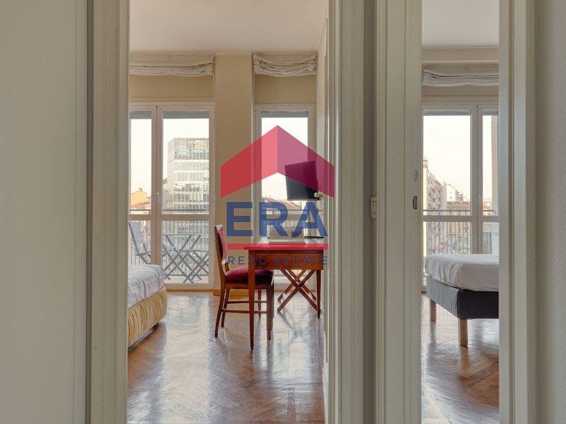 Labitazione è luminosa e silenziosa, grazie alle ampie porte finestre con doppi vetri e alle balconate perimetrali che regalano una splendida vista su Piazzale Loreto e Corso Buenos Aires nelle giornate limpide si scorgono persino le montagne.