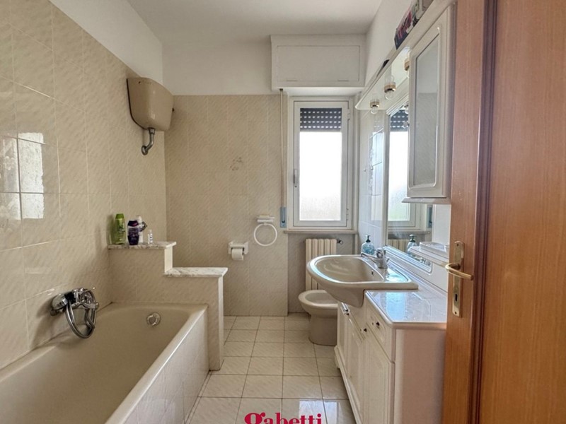 La zona notte, ben distribuita, offre una camera matrimoniale con balcone, una camera doppia e una cameretta. A servizio della casa vi sono due bagni finestrati: uno con vasca, servizi e finestra, e l'altro con doccia, lavatoio, attacco lavatrice e finestra.