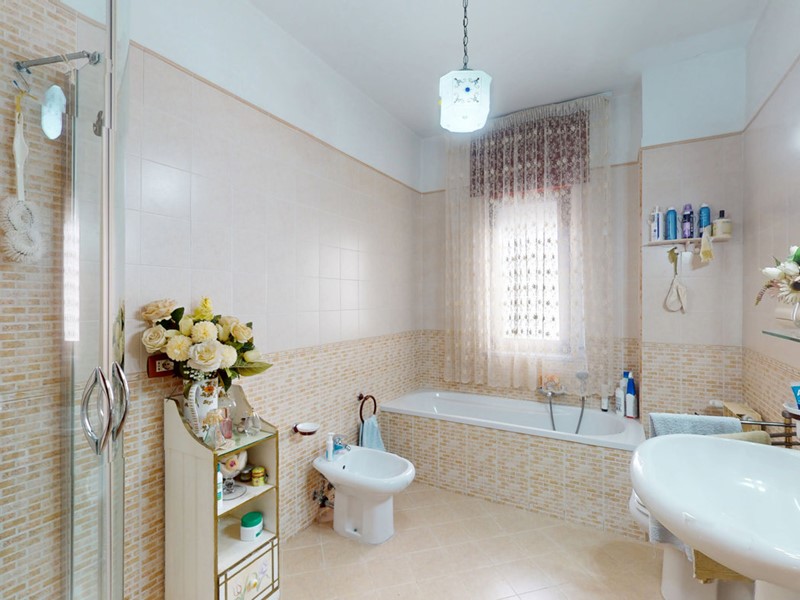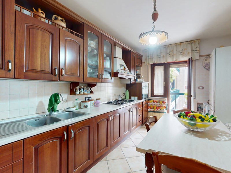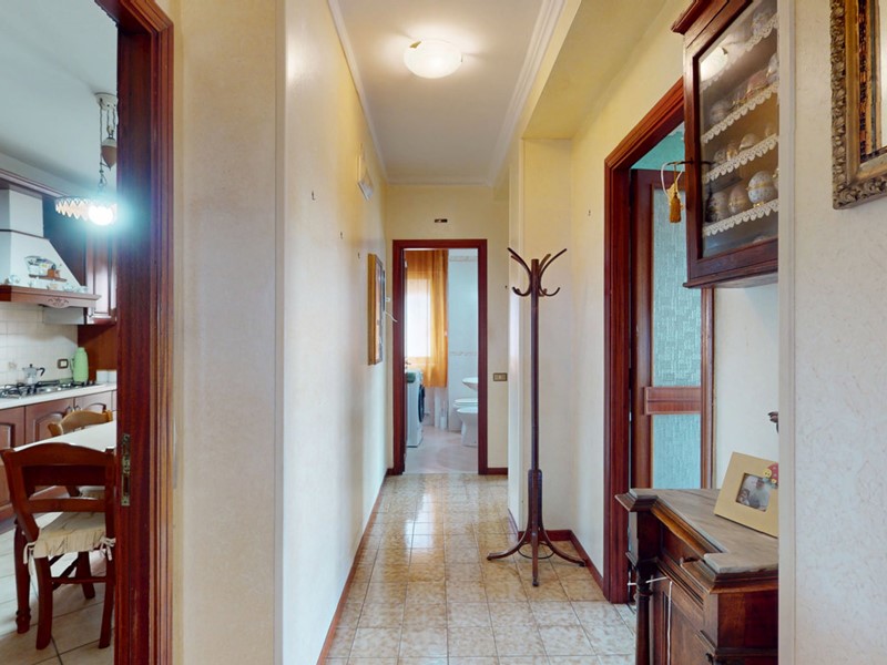 La distribuzione interna è così composta: ampio ingresso, soggiorno doppio, cucina abitabile, tre camere da letto (tutte con accesso ai balconi) e due bagni. Gli ambienti risultano ampi, luminosi e ben distribuiti, garantendo comfort e funzionalità.