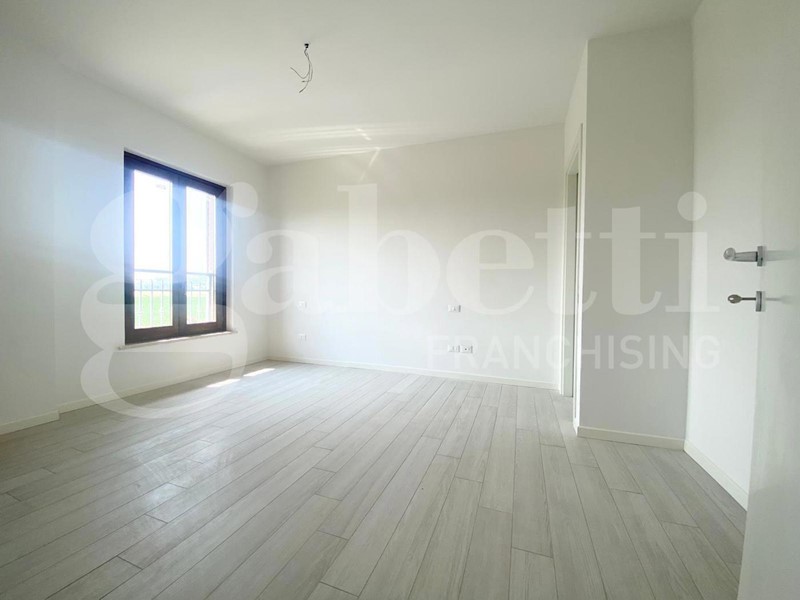 In zona residenziale, vicino a tutti i servizi, disponiamo di appartamento nuovo, libero su tre lati, posto al piano primo di quadrifamiliare di recente costruzione, senza spese di condominio. La soluzione si compone di ingresso indipendente, soggiorno, cucina separata, due camere da letto matrimoniali, due bagni di cui uno con finestra, tre terrazzi, scala per accedere al piano superiore dove è situata una soffitta di 21 mq rifinita. A completamento della proprietà un garage doppio di 31 mq con ripostiglio.