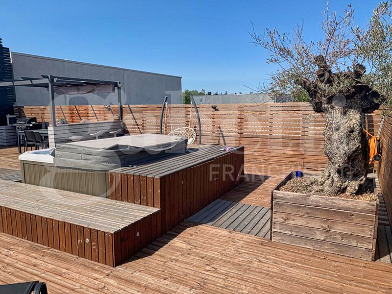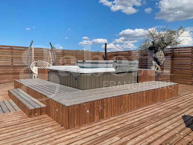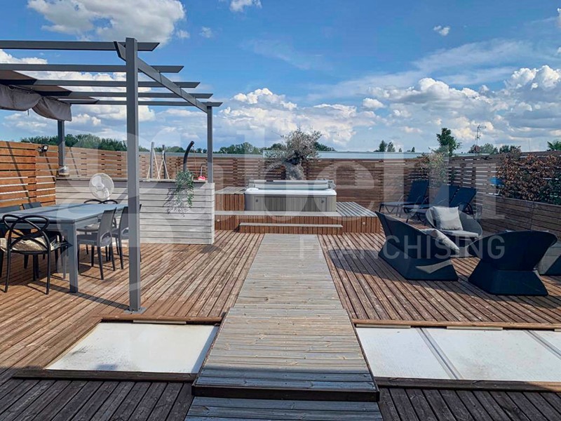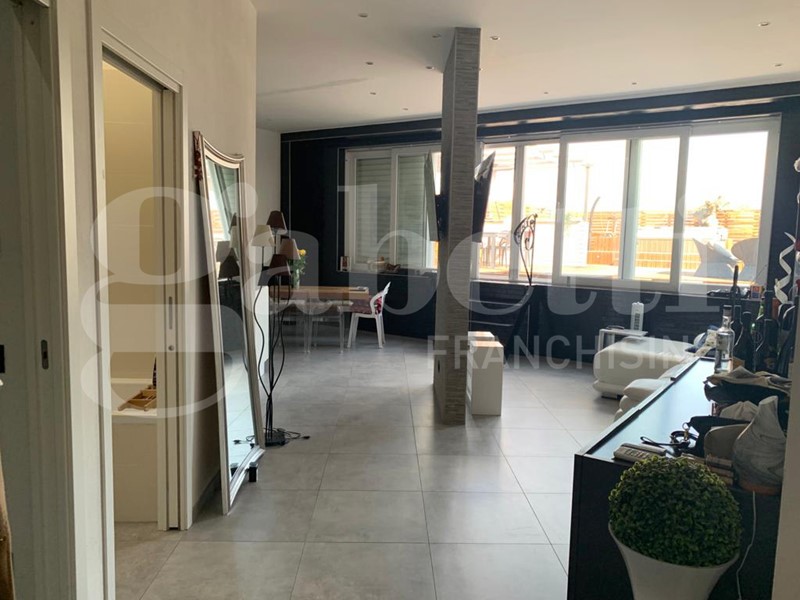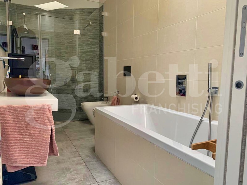 L'immobile è composto da 4 locali, 2 bagni e splendido lastrico solare attrezzato con vasca idromassaggio e zona relax. Finiture con materiali di pregio completano l'immobile rendendolo molto esclusivo e la zona esterna con Jacuzzi, zona bar e doccia, assicura piacevoli momenti di relax in contesto riservato. Pannelli fotovoltaici da 12 kW, domotica, acqua calda a pannelli, tapparelle robotizzate in alluminio, aria condizionata ad inverter, pavimenti in grès di alta qualità. Posti auto di proprietà a piano terra.