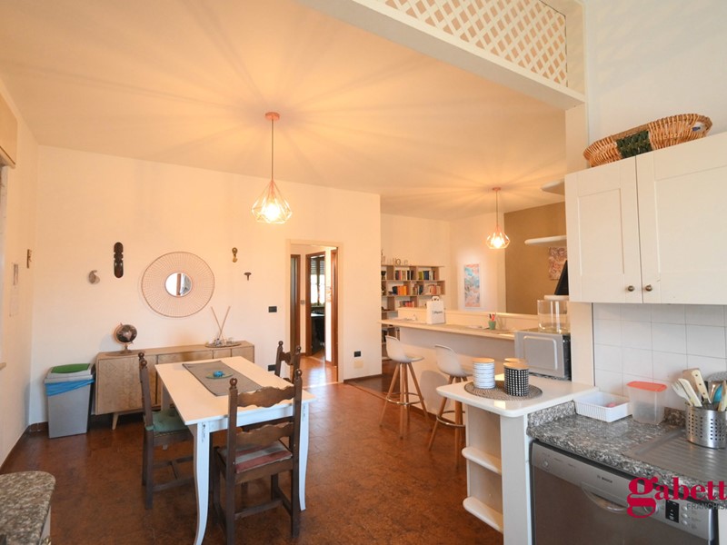 Al piano rialzato, una zona giorno luminosa ti invita a vivere momenti di relax e convivialità: la cucina, il soggiorno, una camera da letto, un bagno e un balcone completano questo spazio armonioso.