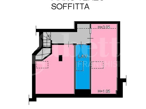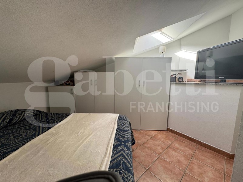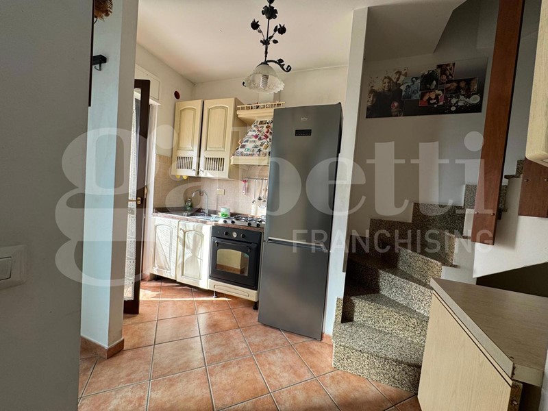 La casa dislocata su 2 livelli è ottimamente suddivisa tra zona giorno e zona notte. Siamo accolti nell'ingresso diviso tra l'angolo cottura, il soggiorno, il bagno e il balcone con vista aperta e panoramica; al piano superiore mansardato (altezza massima 3.05mt e minima 1.05mt) un comodo disimpegno attrezzato con armadiature, due ambienti e lavatoio.