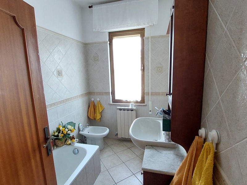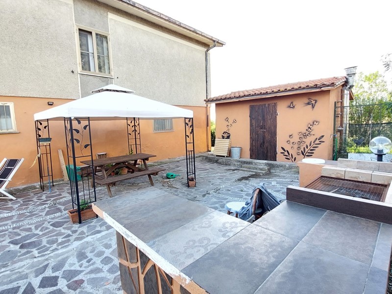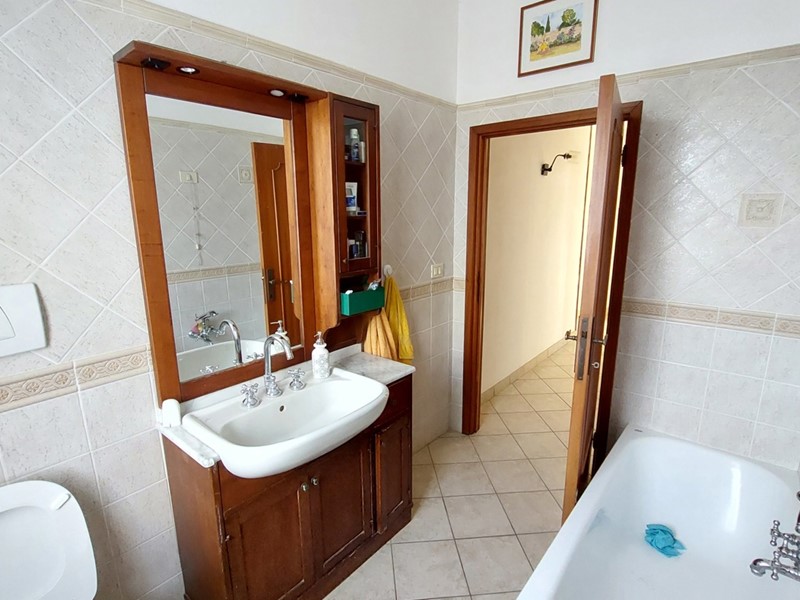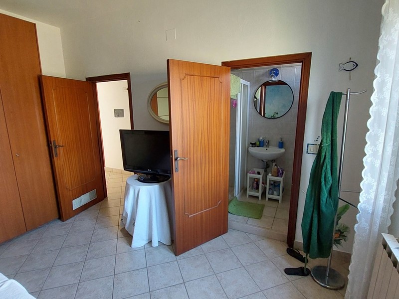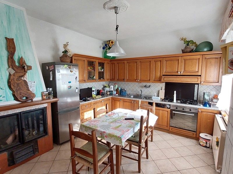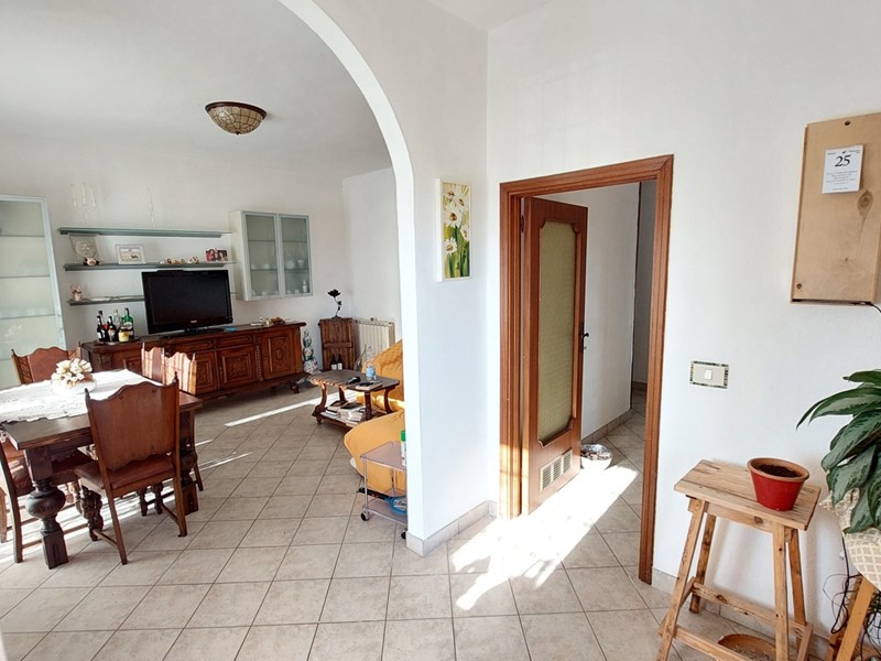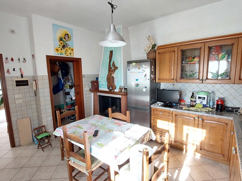 L'abitazione principale, di circa 120 mq, si trova al primo piano e si sviluppa su un unico livello. L'interno è composto da un ampio soggiorno con camino e accesso diretto alla terrazza, una cucina abitabile con ripostiglio, tre camere da letto di cui una con bagno privato, oltre a un secondo servizio finestrato. Gli ambienti sono luminosi e ben distribuiti, pronti da abitare.