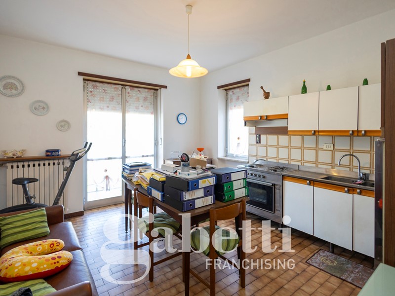 - APPARTAMENTO di 79 mq posto al primo piano, così composto: ingresso su disimpegno, cucina abitabile, due camere e bagno finestrato, oltre al balcone. Di pertinenza il locale ad uso CANTINA nel piano seminterrato.