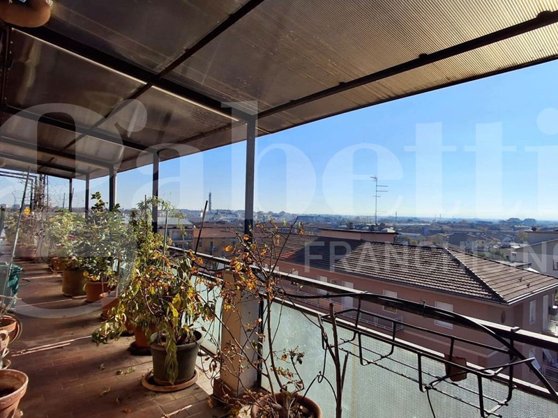 L'appartamento è "abbracciato" sui tre lati da un terrazzo da cui si gode una piacevole vista panoramica sui tetti del quartiere.