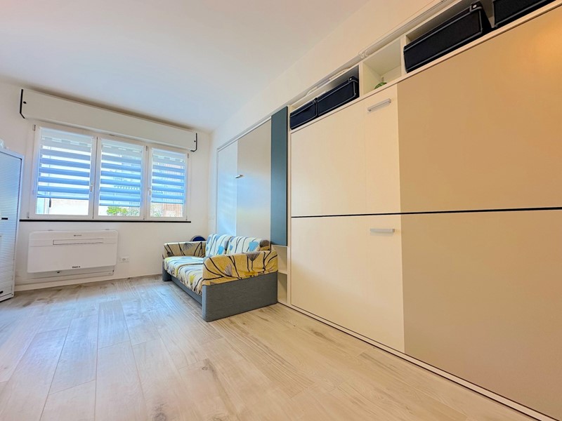 Lo spazio notte, ottimizzato da un pratico letto a scomparsa, permette di trasformare facilmente l'ambiente in una comoda camera da letto o soggiorno, massimizzando così l’utilizzo degli spazi.