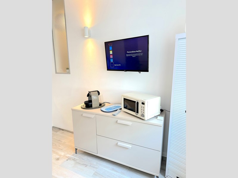 L'appartamento, arredato con gusto, offre ambienti luminosi e ben organizzati. La zona giorno presenta una cucina moderna e funzionale con elettrodomestici di ultima generazione.