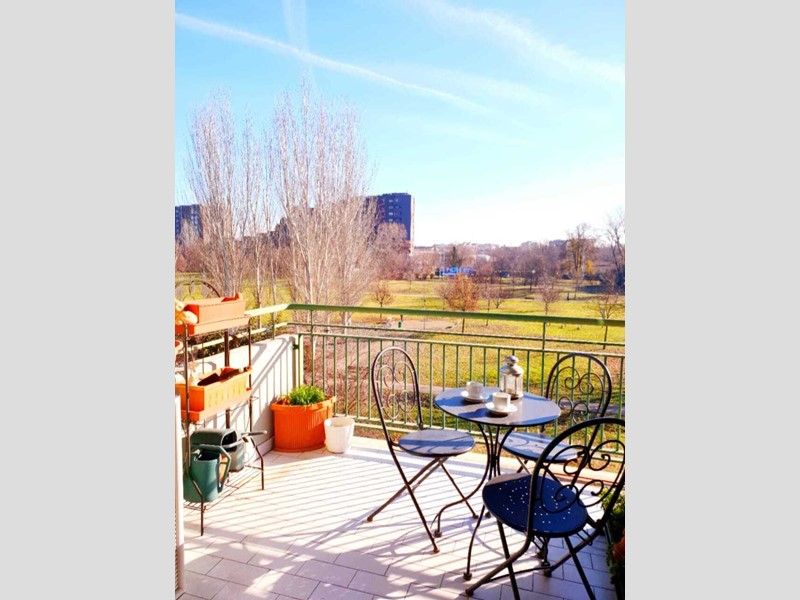 Nell'appartamento sono presenti la cucina con balcone, il salotto con accesso al terrazzo e due bagni in comune.