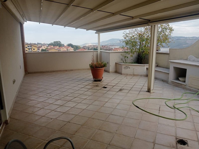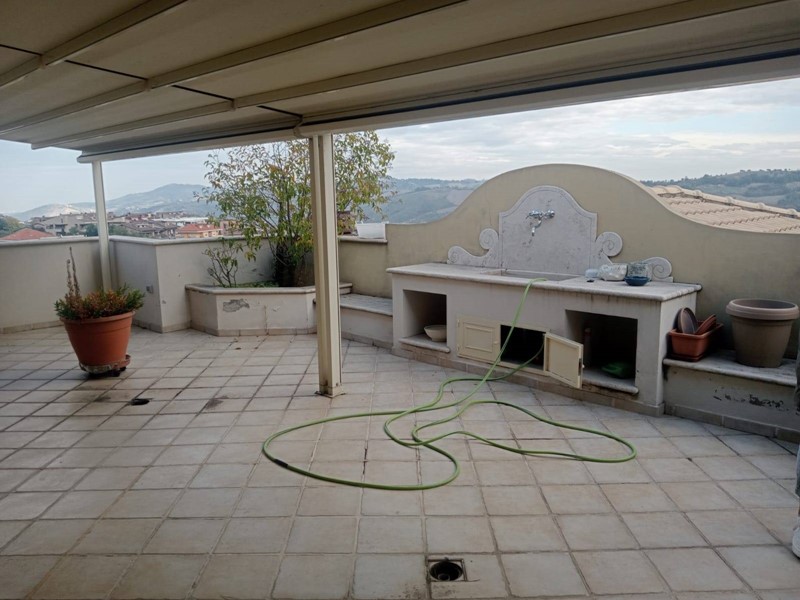 Proponiamo a Teramo, nella zona Residenziale di Villa Mosca, a pochi passi dallOspedale Mazzini, un attico di ampia metratura posto al quarto ed ultimo piano con ascensore facente parte di una palazzina di recente costruzione. L'appartamento realizzato con ottime finiture è composto da un ingresso che si apre su una luminosa zona soggiorno con una ampia vetrata scorrevole che ci permette di accedere ad un grande terrazzo panoramico, una cucina abitabile, una lavanderia/ stireria. Tramite un comodo corridoio si accede alla zona notte dove troviamo una camera singola, una camera doppia, una camera padronale, una ampia cabina armadio, un bagno con doccia ed un grande bagno con vasca. Completano la soluzione una cantina ed un box auto. Non perdere l'occasione di vivere in un contesto esclusivo e raffinato!