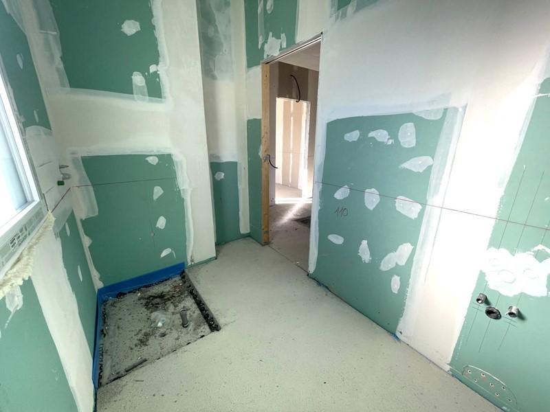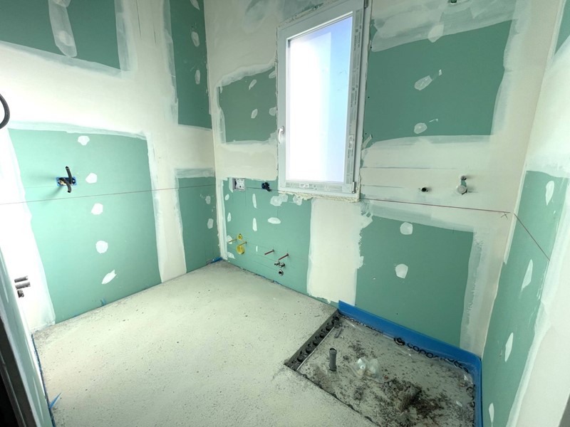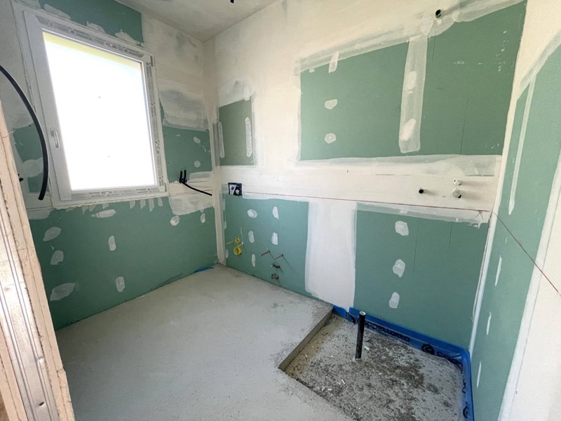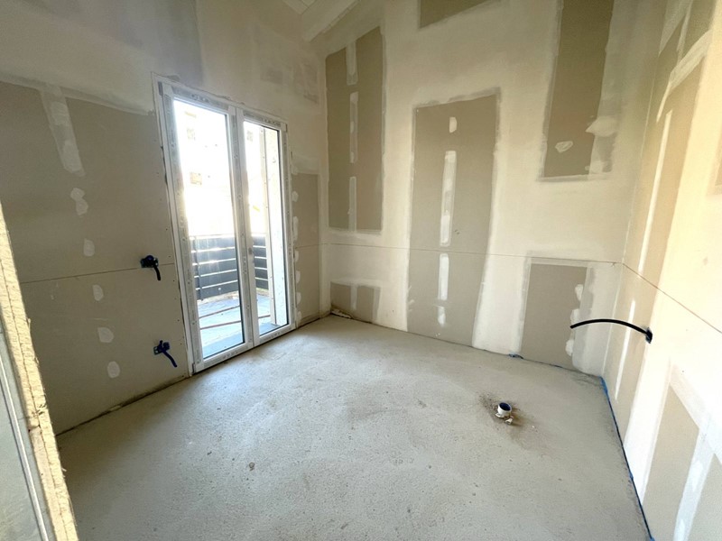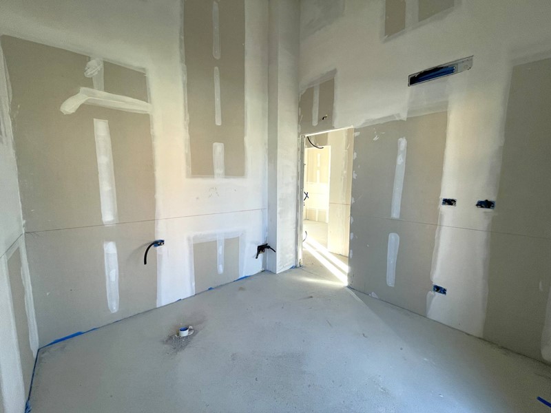 La cucina, ben integrata con la zona living, rappresenta uno spazio aperto ideale per la convivialità, mentre il primo bagno, funzionale ed elegante, completa il piano.