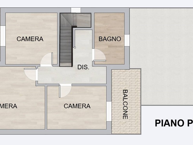Al piano superiore, una pratica e comoda scala conduce alla zona notte, che ospita tre camere, tutte caratterizzate da un'atmosfera unica grazie alle travi a vista bianche che conferiscono eleganza e stile agli ambienti. Un ripostiglio a soppalco e un secondo bagno, dalle finiture a scelta di alta qualità, e i balconi, completano questa zona.