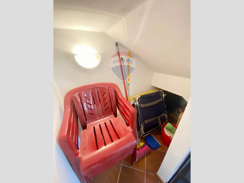 Al piano terra, vi accoglie una luminosa zona giorno, completa di un accogliente salotto con un pratico divano letto, una cucina funzionale e un vano sottoscala adibito a ripostiglio, ideale per conservare ordinate le vostre cose.