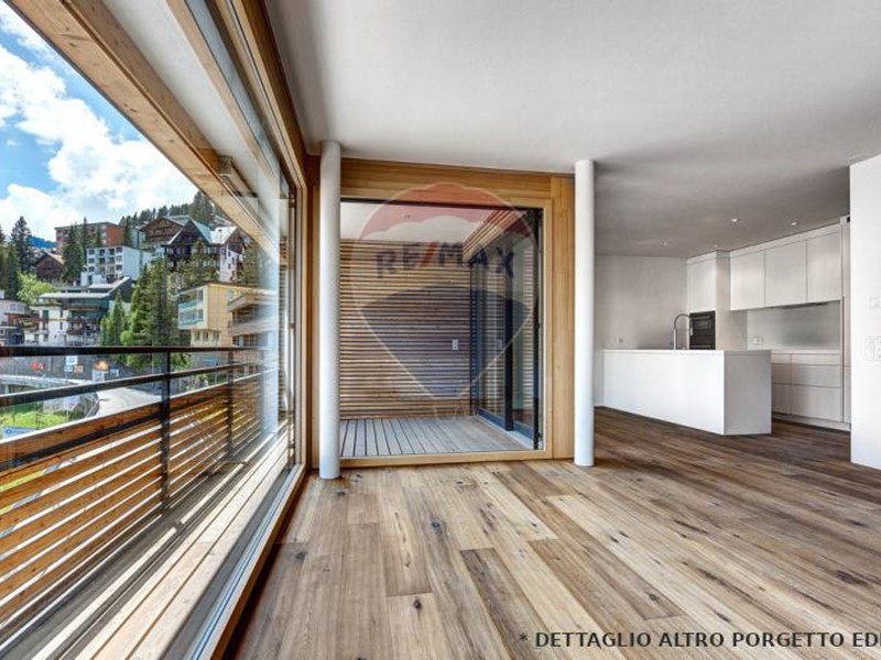 Pavimenti in legno per un'atmosfera calda ed accogliente, con pavimentazioni in gres porcellanato per cucina, bagni ed esterni.