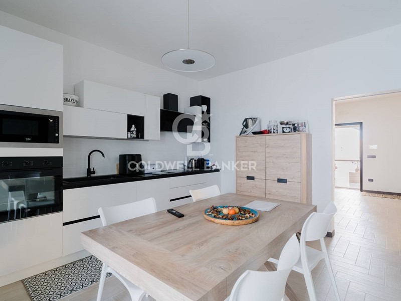 Il primo corpo, al piano terra, accoglie un living room doppio con camino che dialoga con unampia cucina abitabile, cuore conviviale della casa e perfetta per la quotidianità. Sullo stesso livello trovano posto un bagno per gli ospiti con doccia, un comodo vano lavanderia e un intimo giardino interno che regala luce e privacy. Dalla zona giorno si accede al reparto notte composto da tre camere da letto, un bagno con doccia e vasca, una cabina armadio e due utili ripostigli, pensati per massimizzare lordine e lorganizzazione.